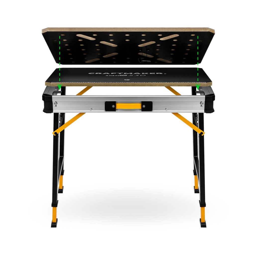 Elevate your craftsmanship and extend the life of your CRAFTMAKER Pro Station S30 folding work table with this high-quality replacement MDF worktop. Engineered for precision and durability, this work surface seamlessly integrates with your existing setup, allowing for quick, effortless swapping so you can minimize downtime and maximize productivity on every project. Its robust design provides a stable and versatile platform, ready to tackle a wide range of tasks with enhanced accuracy and security. Featuring perfectly spaced 20mm holes for bench dogs and convenient oval slots for one-hand clamps, this worktop ensures your materials are always held firmly in place. Additionally, a clear, printed metric scale (0 to 74 cm) along both long edges facilitates fast and accurate measurements directly on your workspace.