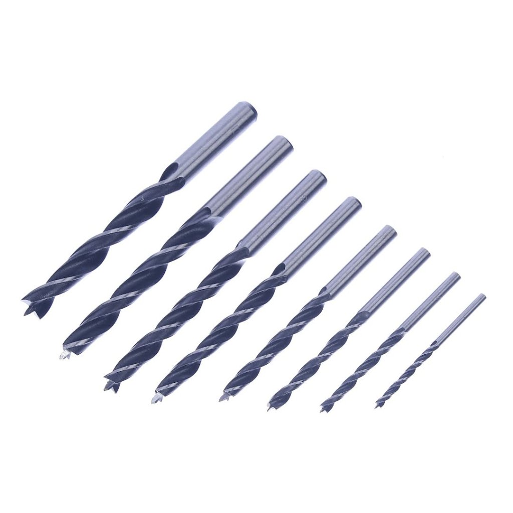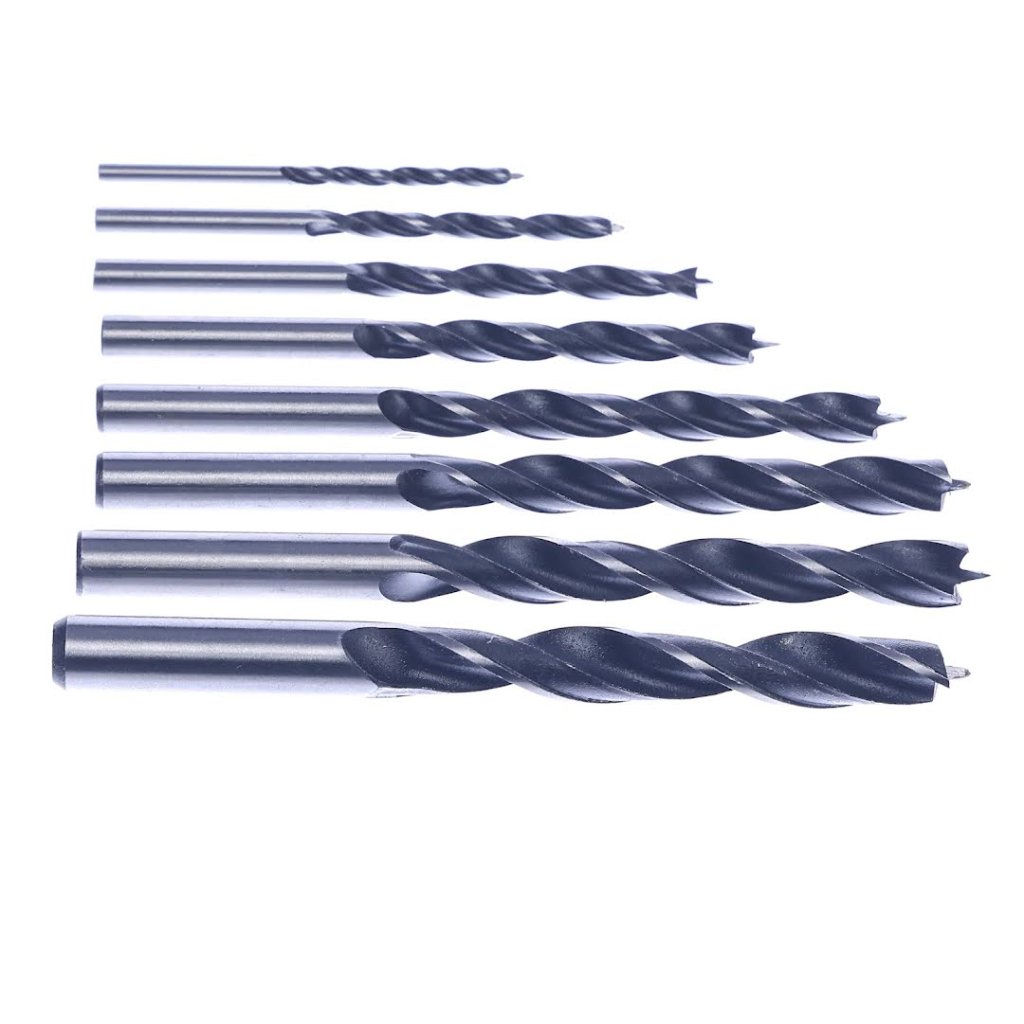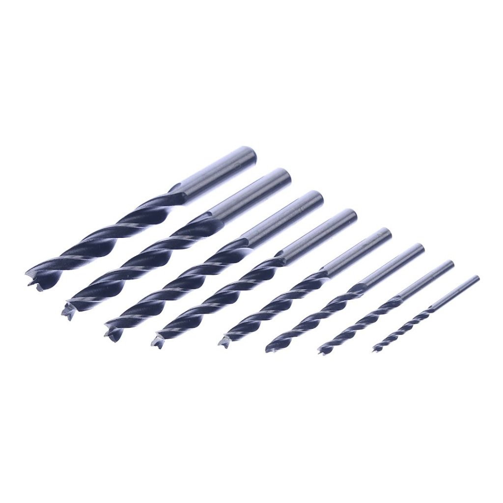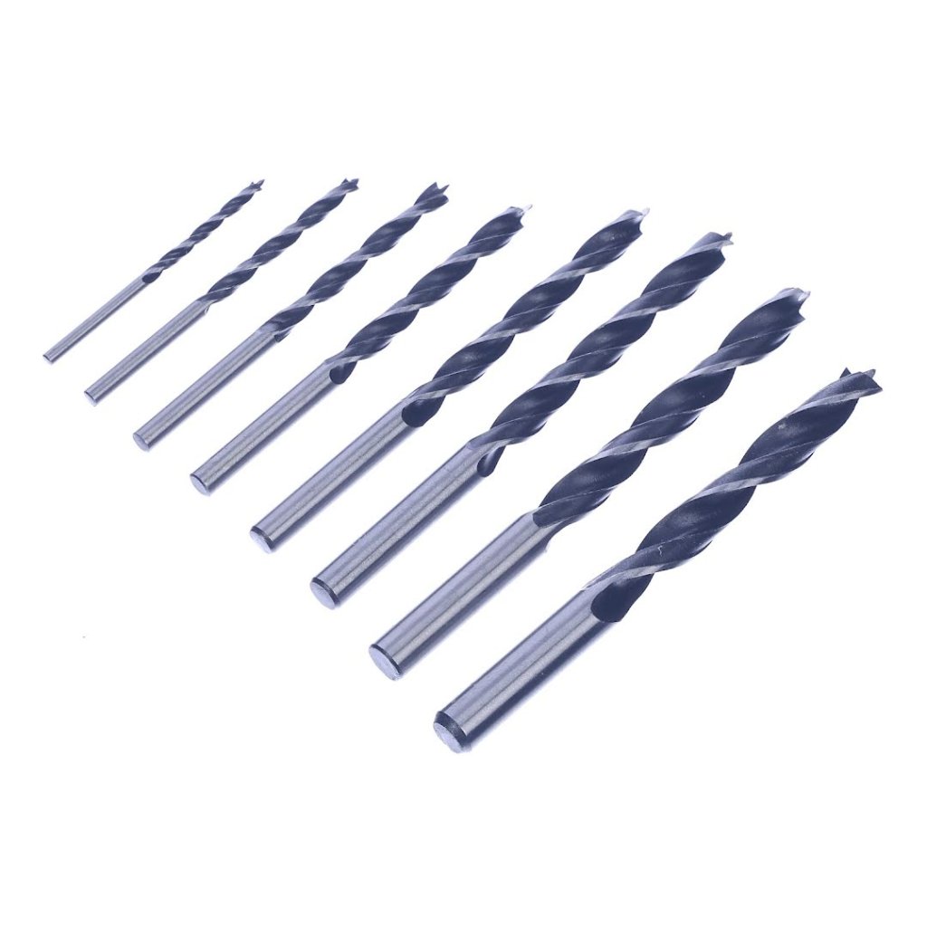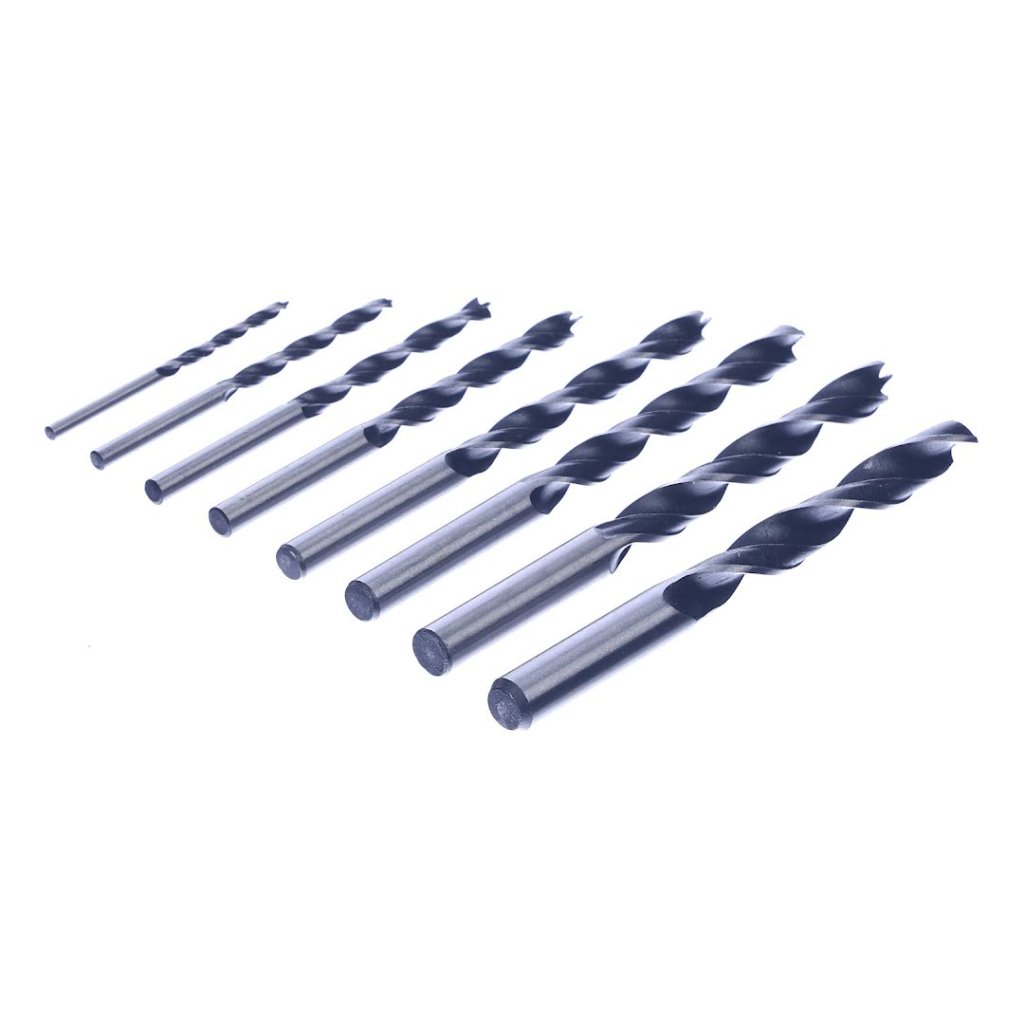 E-VALUE Brad Point Drill Bit Set with Round Shank - 8 pcs - 3-10 mm