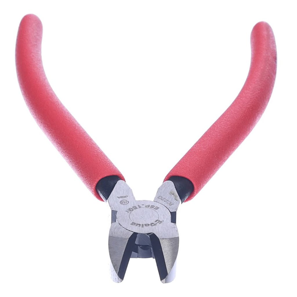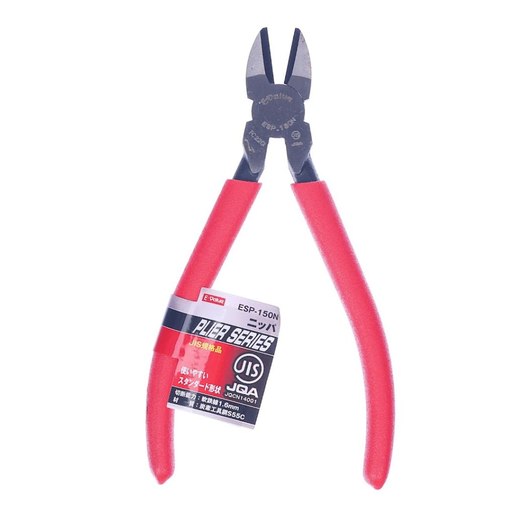 The E-VALUE Cutting Pliers, model ESP-150N, is a standard-shaped cutting tool designed for precision and ease of use. It boasts a compact size of 50 mm in width, 163 mm in height, and 10 mm in depth, with a weight of 170 g, making it lightweight and easy to handle for various cutting tasks. Specifically tailored for cutting iron and copper wires, this model meets the rigorous JIS (Japanese Industrial Standards), ensuring reliability and quality in every cut.
