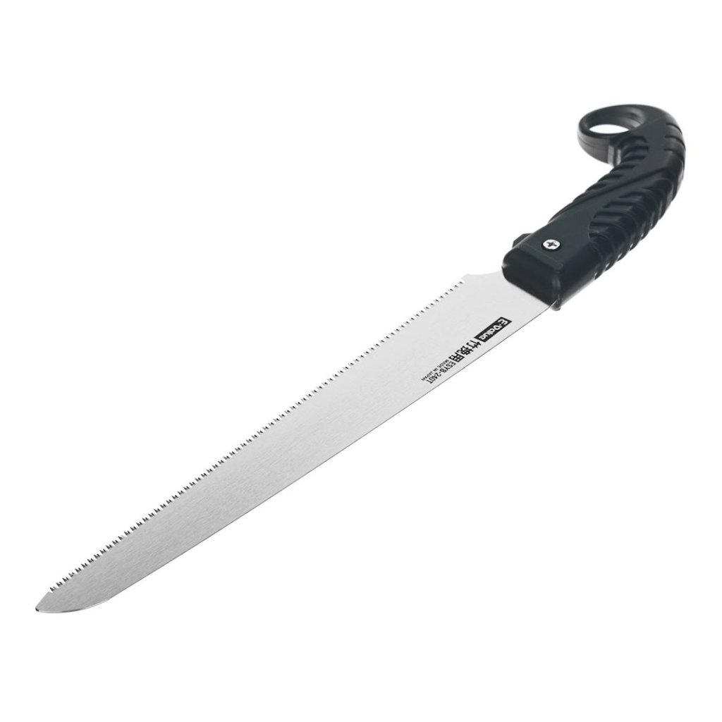 The E-VALUE Japanese Replaceable Blade Saw, model ESY-240T, is a versatile tool for efficient bamboo cutting and general woodworking tasks. It features a 240 mm blade with a nickel-plated, hardened edge, ensuring durability and precision. The ergonomically designed grip allows for better control and force application during use. The blade is secured with a screw-fixing mechanism, and the saw includes a convenient belt hook for easy portability. It is ideal for bamboo processing, PVC pipe cutting, and pruning.