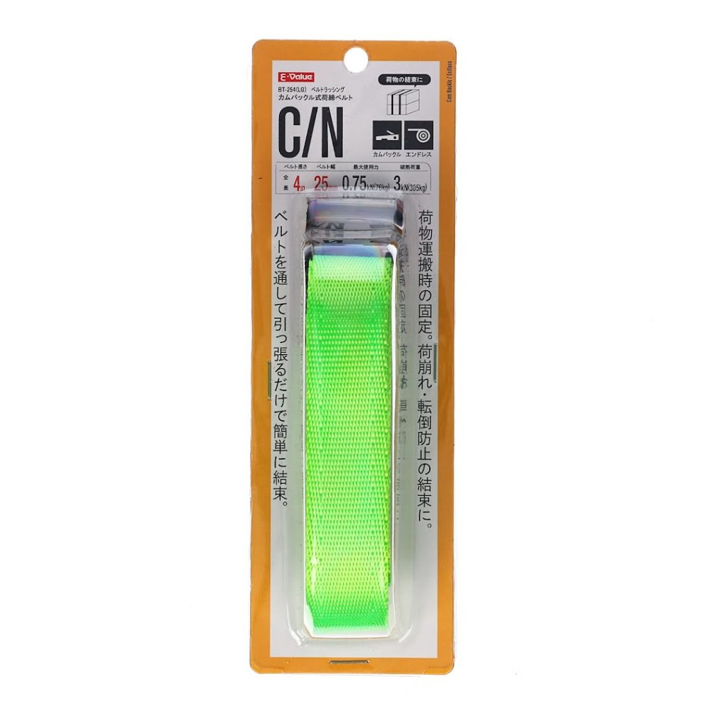 The E-VALUE Lashing Strap is a versatile cam buckle lashing strap designed for easy and secure cargo fastening by threading and pulling the belt. It is ideal for transporting goods, preventing load shifts, and securing items during outdoor activities, relocations, and emergency preparations. The strap features a width of 25 mm and a length of 4 m, with a maximum working load of 0.75 kN (76 kg) and a breaking strength of 3 kN (305 kg). The lime green belt ensures visibility and ease of use.