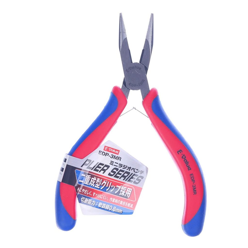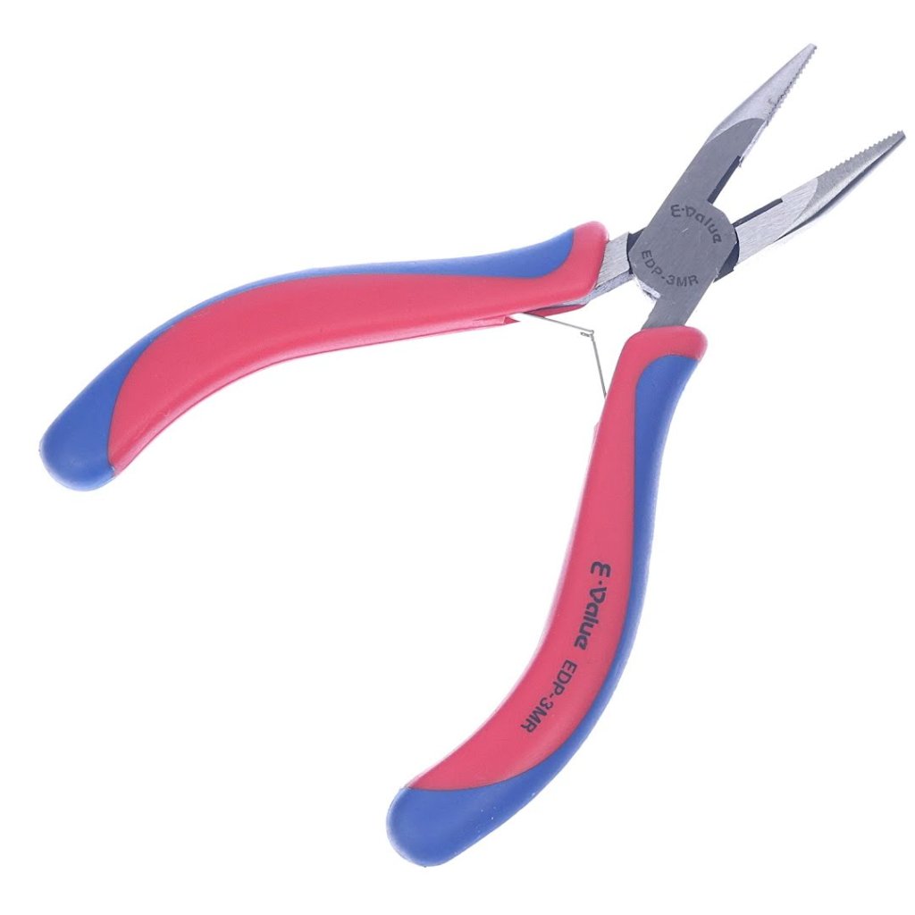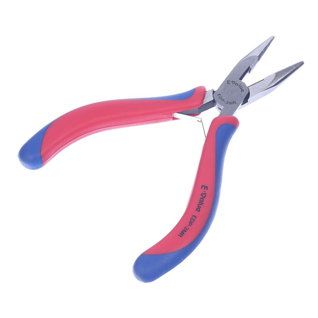 The E-VALUE Mini Combination Pliers, model EDP-3MR, is essential to enhance your crafting and hobby experience. Its compact size of 54 mm in width, 125 mm in height, and 12 mm in depth, weighing just 70 g, makes it perfect for precision tasks. The pliers have a soft grip for comfortable handling, allowing easy gripping, bending, and cutting. It boasts a cutting capacity of 0.8 mm for soft iron wire, which is ideal for various hobbyist applications.