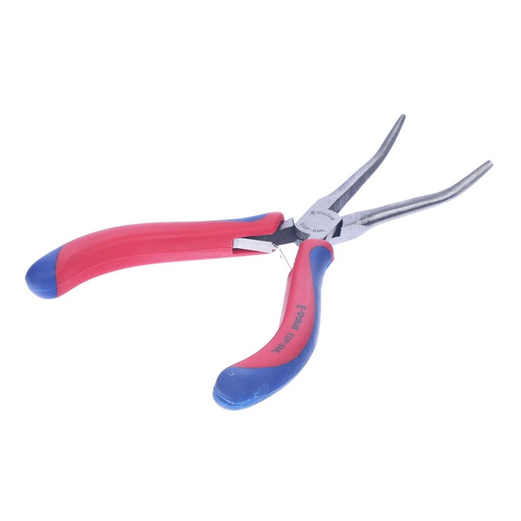 The E-VALUE Mini Needle-Nose Curved Pliers, model EDP-5ML, is a versatile tool for precision work in hobbies, including gripping and bending tasks. Its compact size, width of 54 mm, height of 148 mm, depth of 12 mm, and light weight of 70 g make it easy to handle. The plier features a soft grip for comfortable use, allowing for extended work periods without fatigue. Explicitly designed for hobbyist applications, with an overall length of 148 mm, the E-VALUE Needle Nose Pliers are an essential tool for detailed projects.
