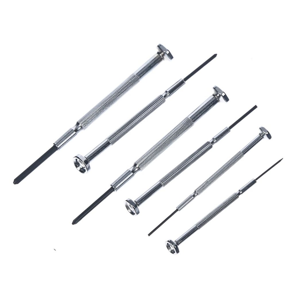 The E-VALUE Precision Screwdriver Set, model ED-20, is ideal for delicate tasks such as tightening and loosening small screws, repairing watches and glasses, and assembling models and precision instruments. The set includes six screwdrivers, each featuring a knurled handle for enhanced grip and control. The ends of the screwdrivers can freely rotate, allowing you to turn the shaft with minimal effort while maintaining pressure with your fingertips.