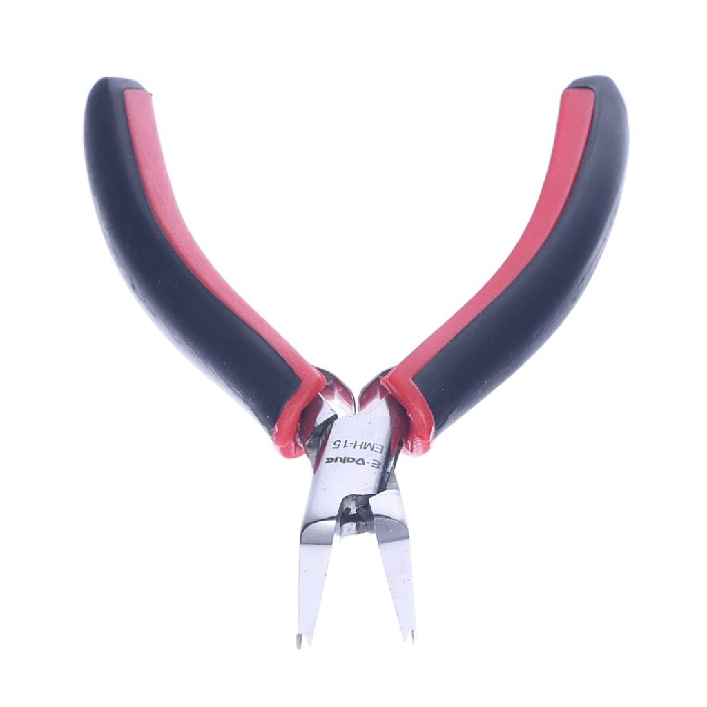 The E-VALUE Stainless Steel Bent Tip Pliers, model EMH-15, are designed for precision and hobby work, featuring a rust-resistant stainless steel construction. Its soft grip ensures comfort during use, while the spring-loaded mechanism facilitates continuous operations with ease. With no serrations at the tip, it guarantees no damage to your materials. This tool is perfect for delicate tasks where precision and care are paramount.