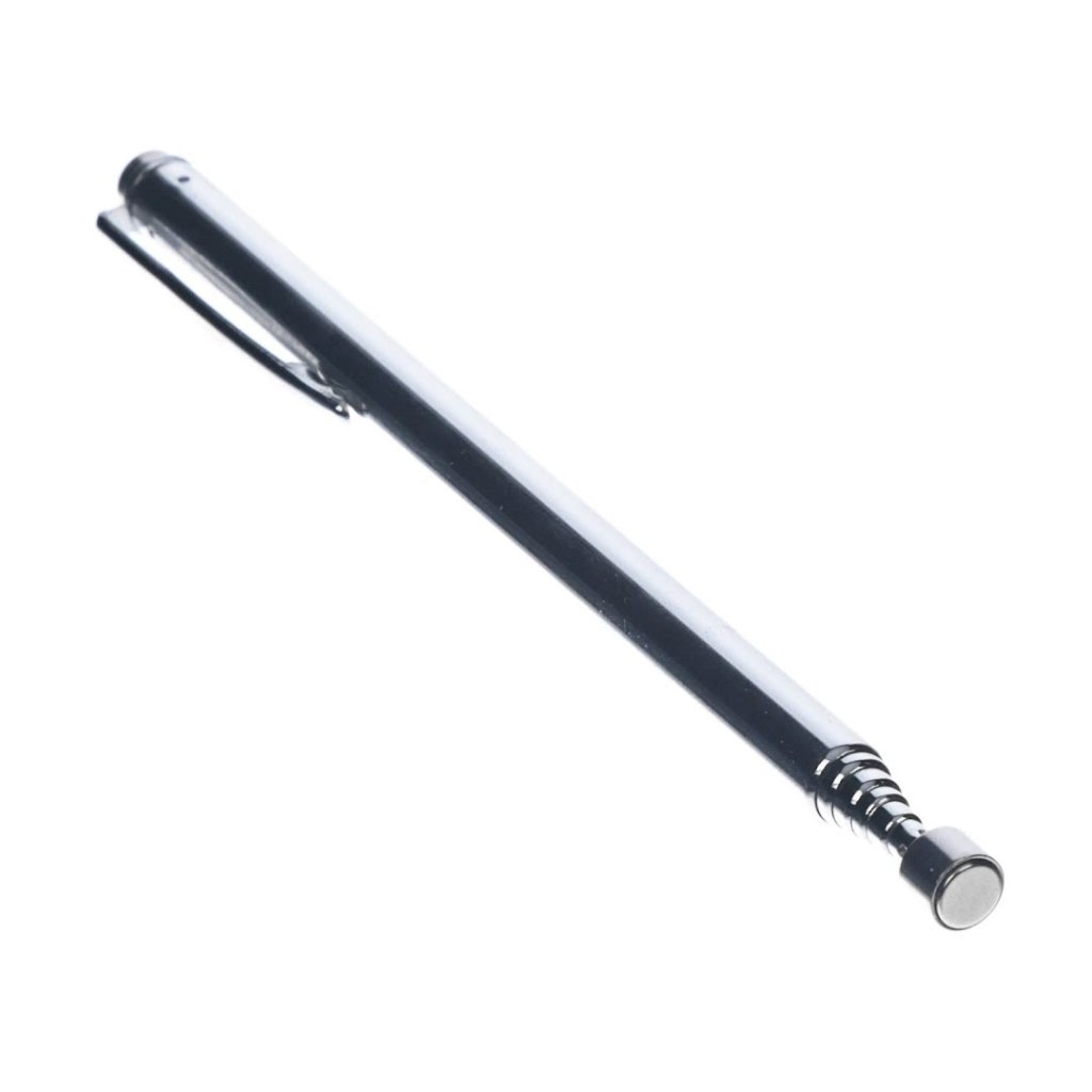 The E-VALUE Telescoping Magnetic Bar, model EMB-01N, is designed to catch screws and tools in hard-to-reach places easily. It has a telescoping design extending from 14.5 cm to 65 cm in 6 adjustable stages, making it ideal for use in confined spaces. The tool can lift objects up to 500 g with its powerful magnet and comes with a handy clip for easy carrying and storage.