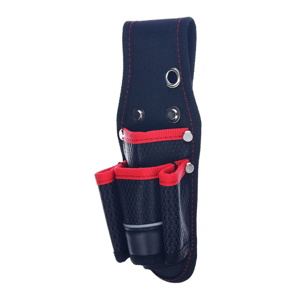 The E-VALUE Tool Case with 4 Pockets, model ETK-3T RD, is designed for style and functionality. This lightweight and durable tool holder is perfect for carrying pliers, screwdrivers, and other essential tools. With four convenient pockets, it measures 85 mm in width, 230 mm in height, and 50 mm in depth. The holder features a sleek black and red design and is compatible with belts up to 60 mm wide. It is ideal for any DIY enthusiast or professional tradesperson.