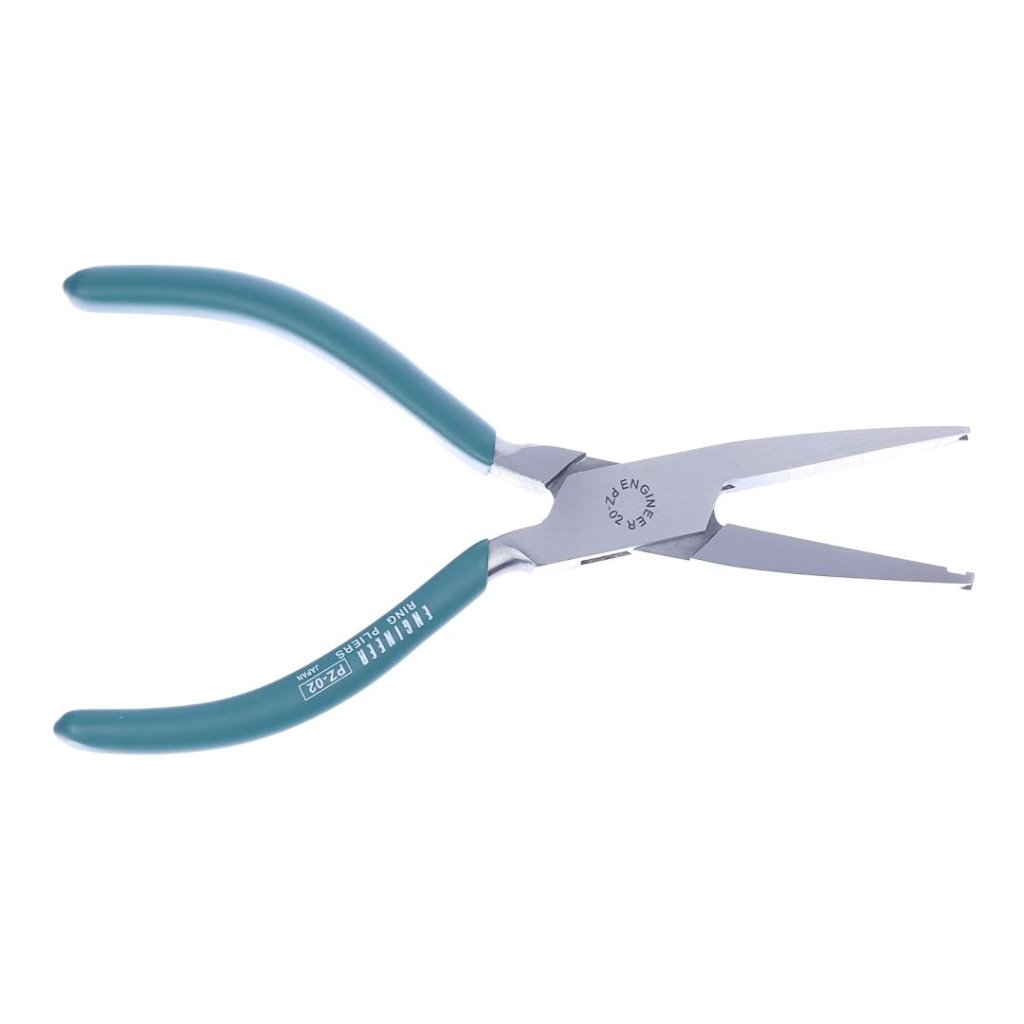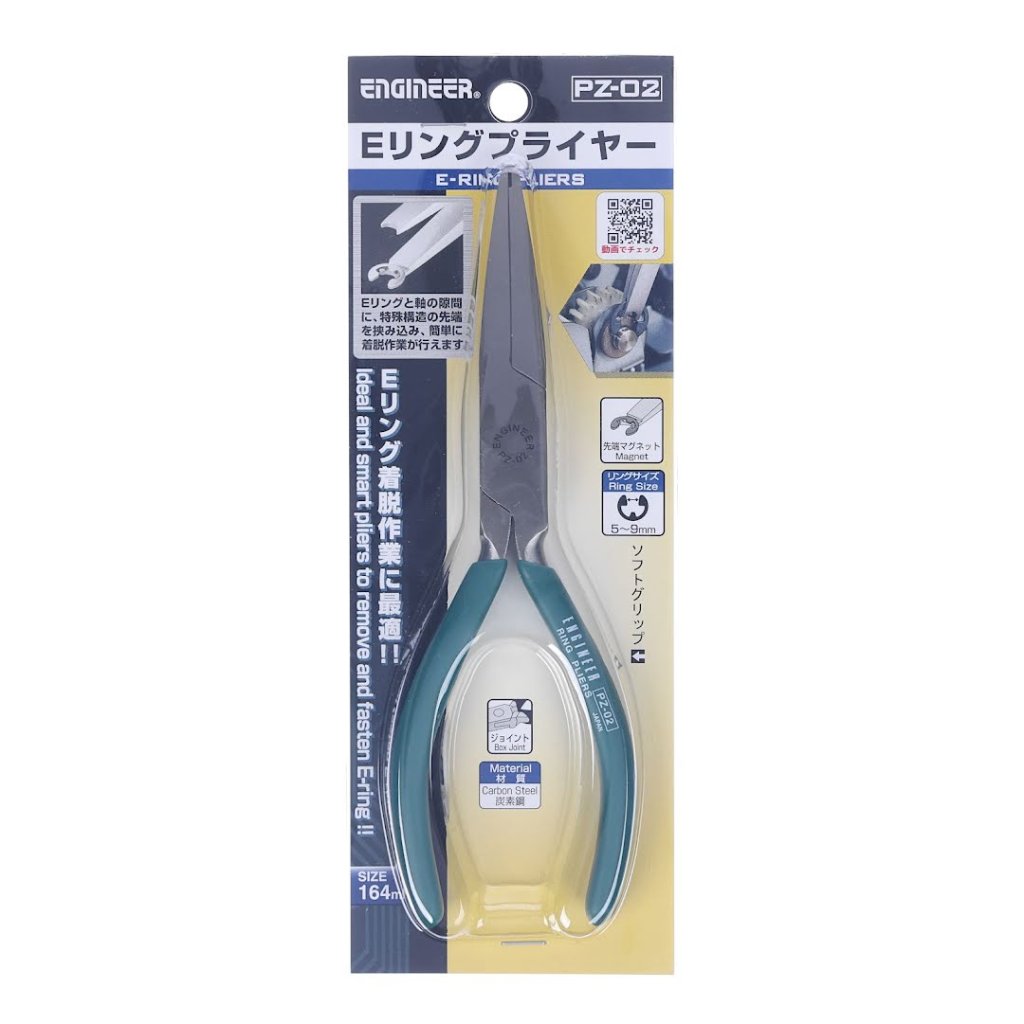 The precision ENGINEER E-Ring Pliers PZ-01 easily attach and detach E-type retaining rings with a magnetized tip for convenience.