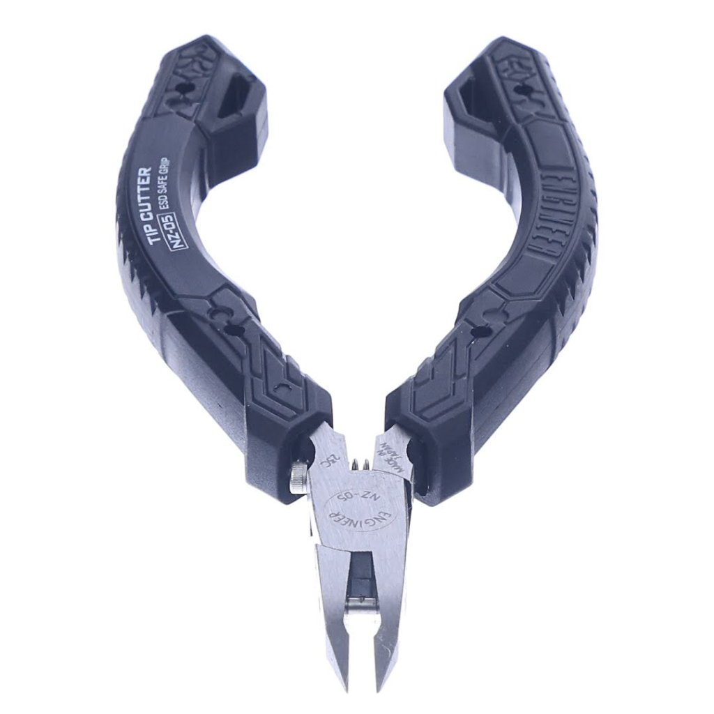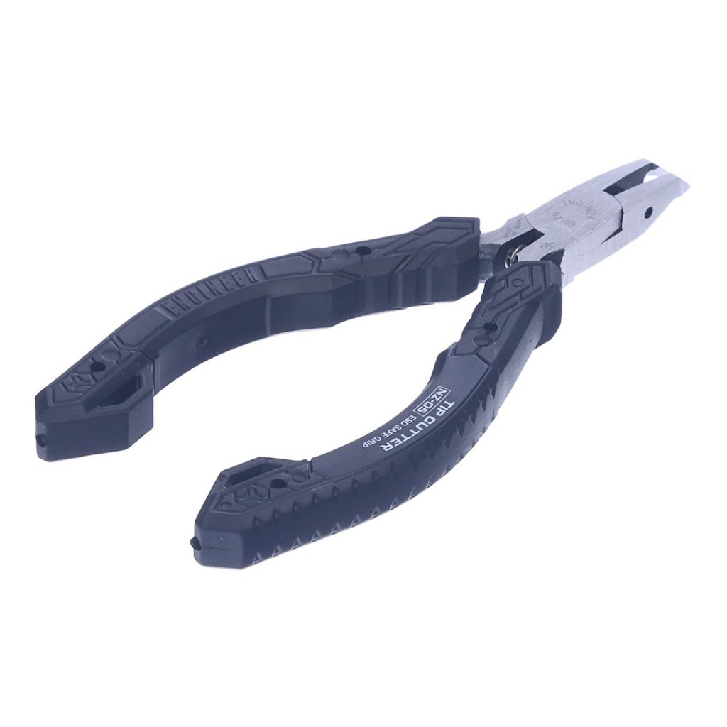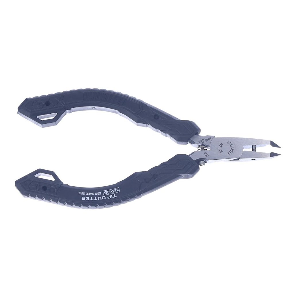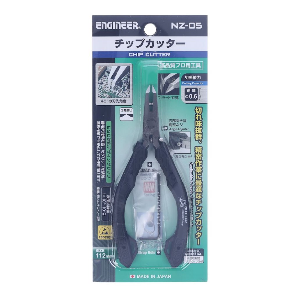 The ENGINEER Japanese Chip Cutter's 45-degree angled blade is designed for precision in dense areas. This lightweight tool, at only 67 g and dimensions of 51 x 123 x 8 mm, is perfect for intricate work. It features an adjustable blade opening mechanism and is made from environmentally friendly elastomer resin for a comfortable grip. Additionally, it includes a strap hole for drop prevention, making it an essential tool for any detailed electronic project.