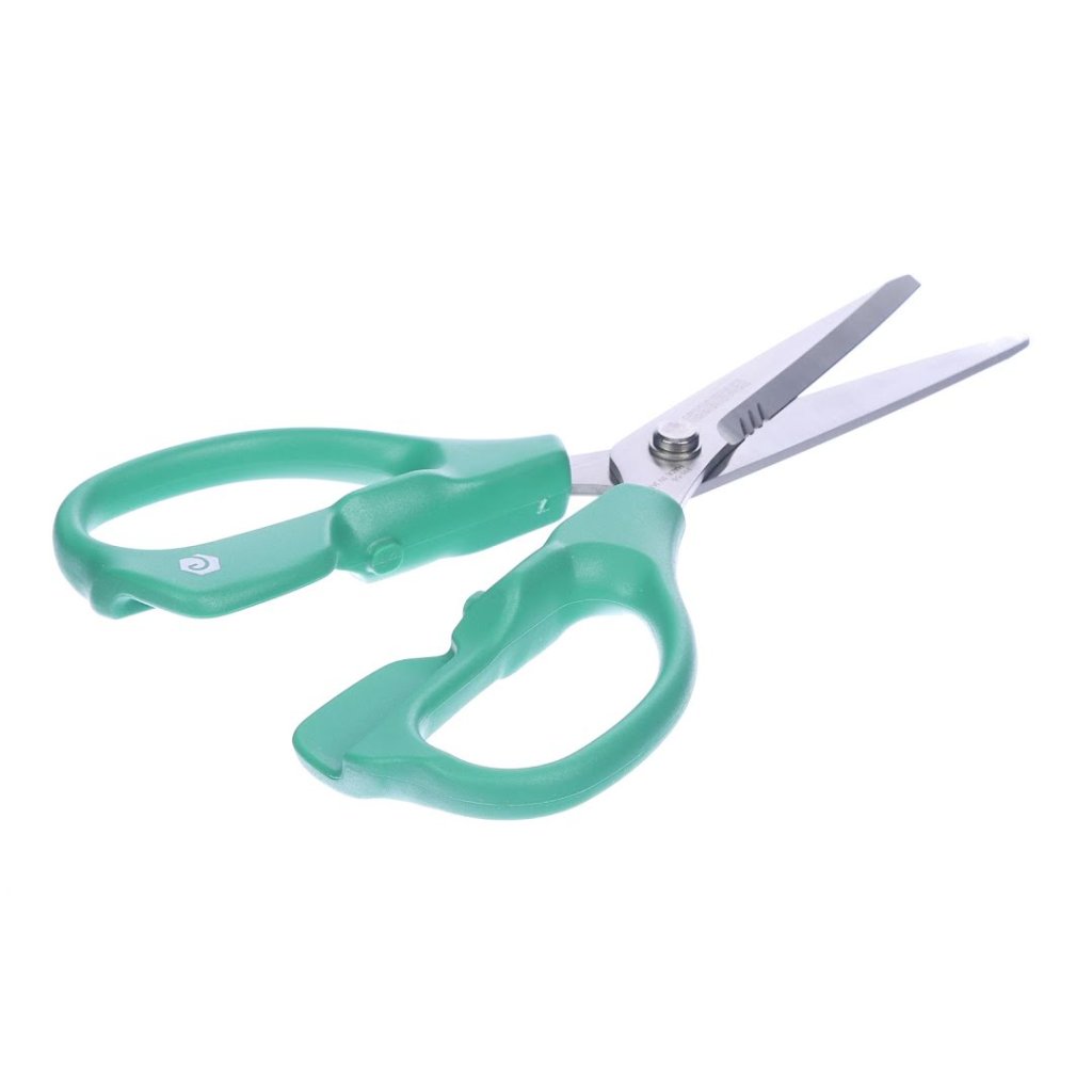 The ENGINEER Japanese Combination Scissors, model PH-56G, are designed for versatility and precision. With blades of different sizes, they effortlessly cut through a wide range of materials, from ultra-fine fibers and PET to electrical wires and ropes. The improved blade geometry enhances sharpness and durability, ensuring a long-lasting cutting performance. Safety is prioritized with a finger guard on the grip to prevent accidents during use. These scissors weigh just 75 g and are finished in a striking light green color, combining functionality with style.
