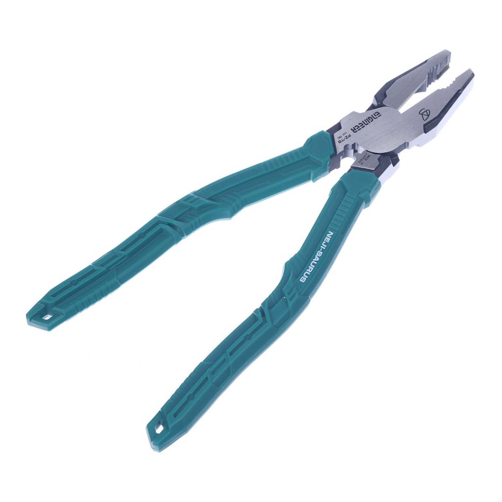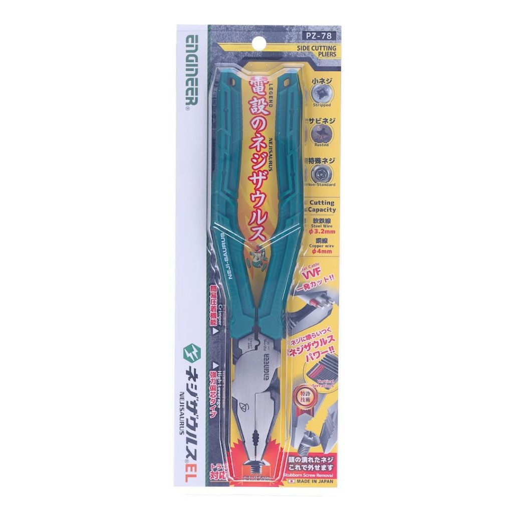 The ENGINEER Screw Extraction Pliers, model PZ-78, is a highly versatile tool designed specifically for electrical installations. Featuring a unique tip shape with an international patent, it grips and turns even low-profile truss screws securely. Its offset vertical serrations allow for a firm grasp on thin ties, making it ideal for removing damaged or rusted screws. With a 30% increase in cutting force compared to standard pliers and a T-shaped grip for reduced weight and twist prevention, this plier can cut through VVF cables and more. Additionally, it includes a safety strap hole for added security during use.