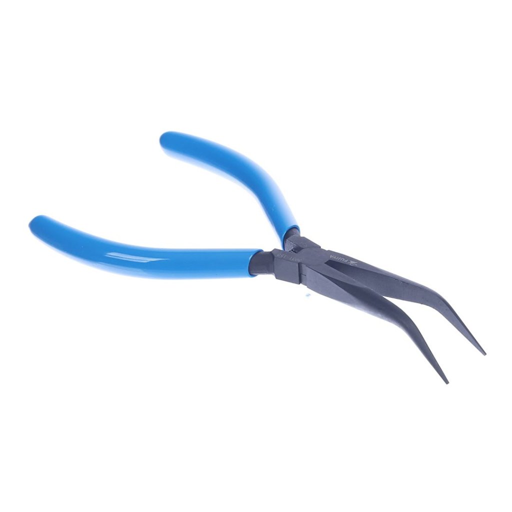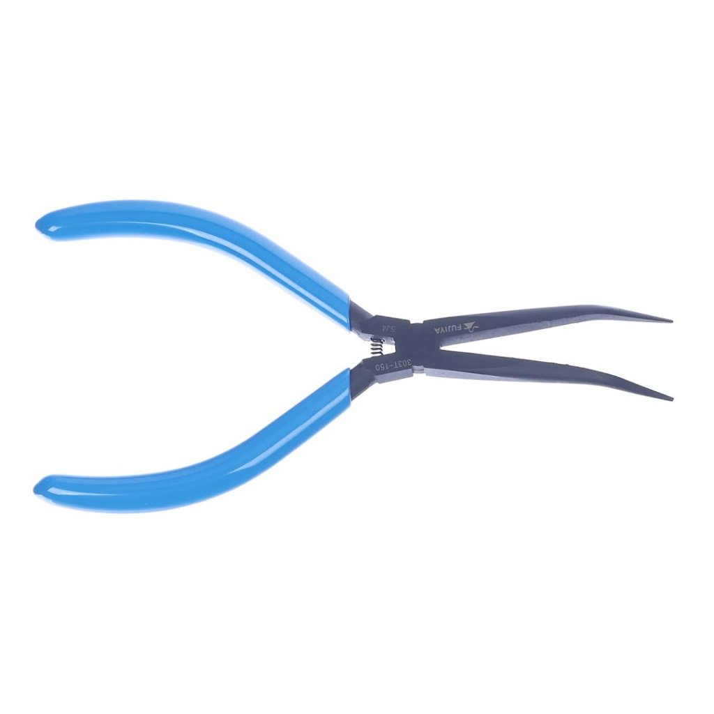 The FUJIYA Extra Long Needle Nose Pliers, model 303T-150, is a precision tool designed for detailed and delicate tasks. Its bladeless, bent design allows for a firm grip without damaging the workpiece, and it is ideal for electronics soldering, fine wiring in tight spaces, and intricate metalwork. With a total length of 147 mm and weighing just 60 g, it is both lightweight and maneuverable. The ultra-fine tip is perfect for precision work, ensuring exact contact and control akin to using tweezers, while the notch-free shape of the tip prevents scratches on delicate surfaces. This plier is the go-to tool for hobbyists and professionals who require precision without compromise.