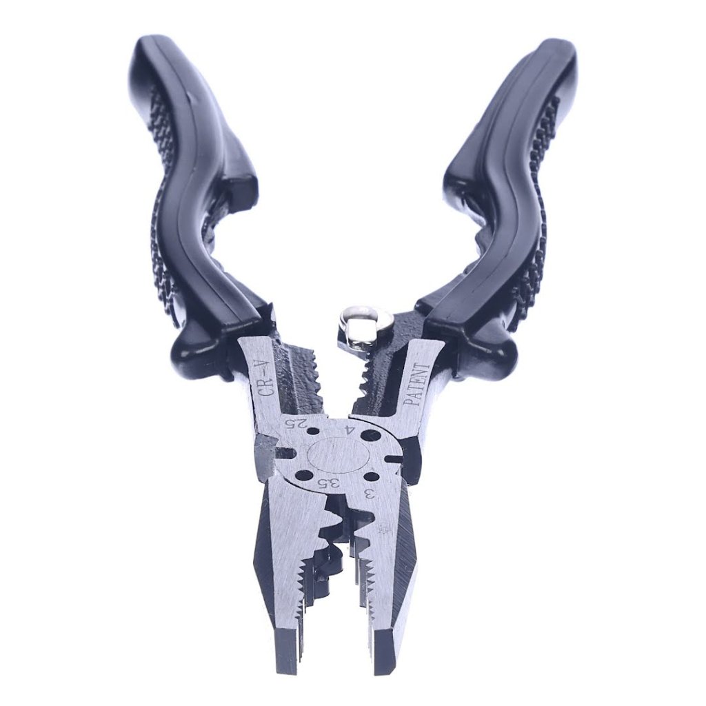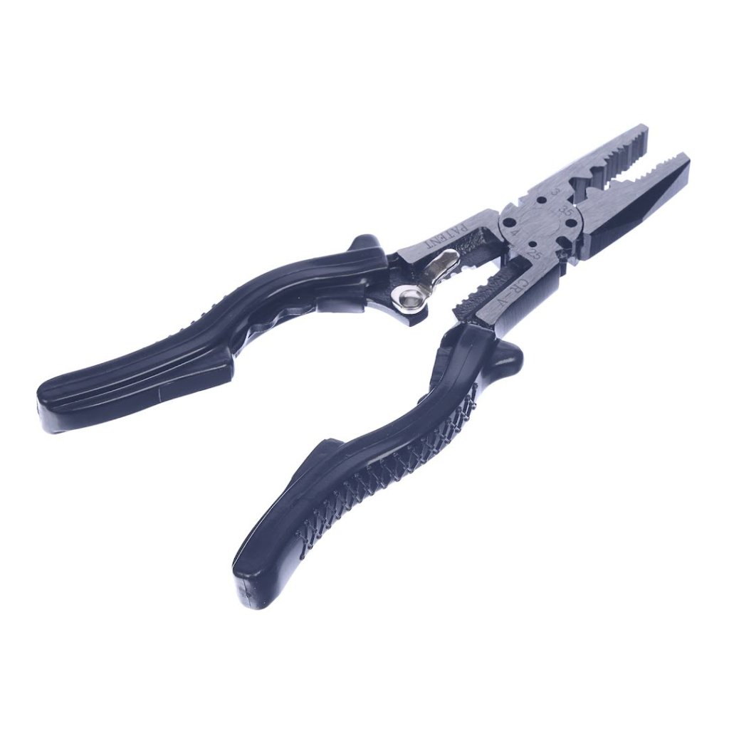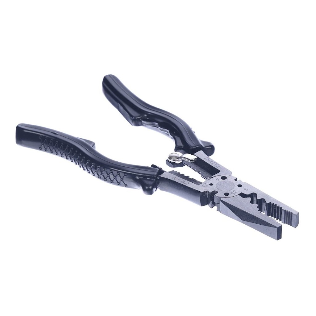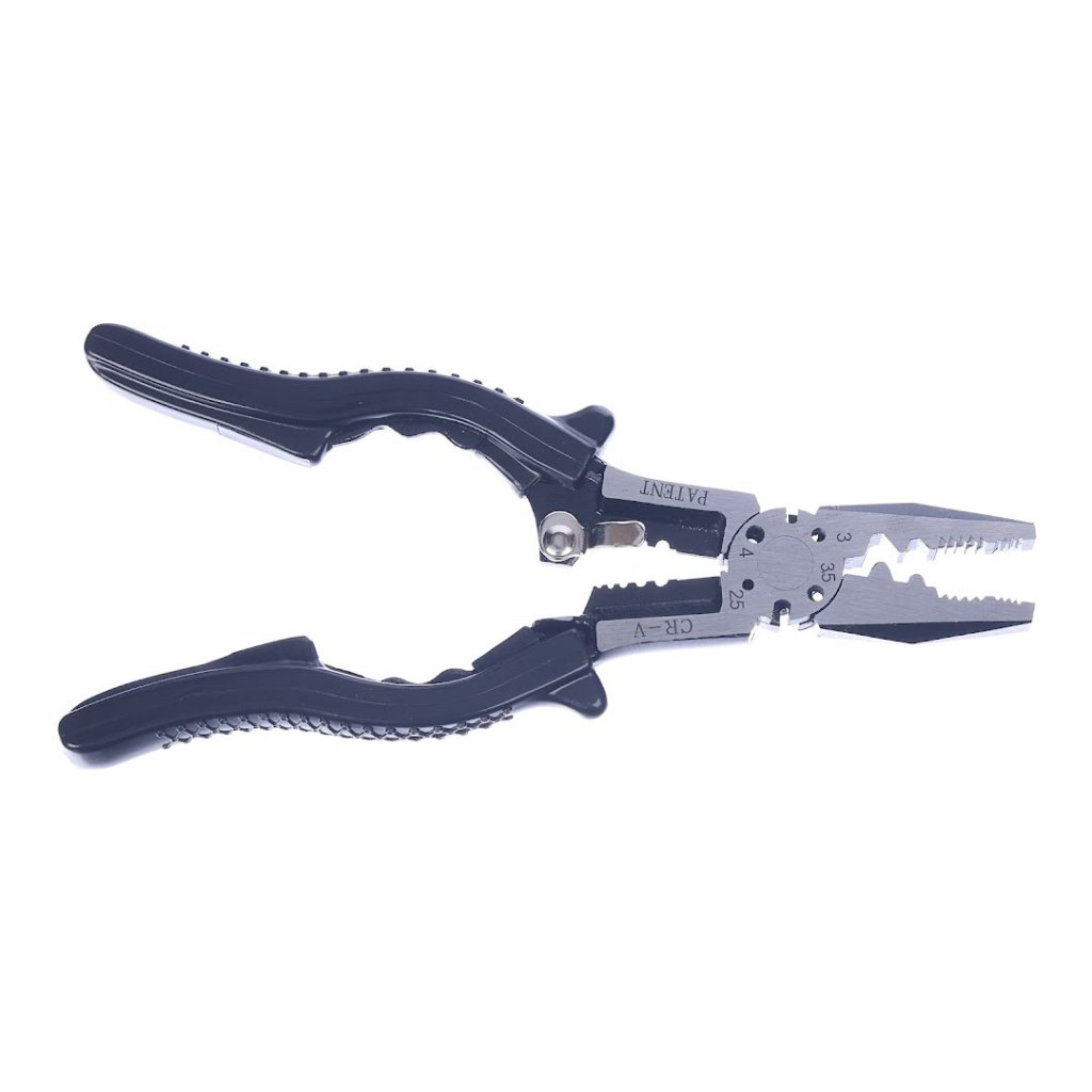 The HI-STEEL Universal Combination Pliers are a versatile tool designed for various applications. This multi-functional plier excels in gripping, cutting, stripping, and crimping, making it an essential tool for any homeowner. It features a built-in wire stripper for 1.0 mm2 to 7 mm2 wires and can crimp terminals between 2 mm2 and 16 mm2. Additionally, it can cut wires up to 3 mm in diameter and bolts from 2.5 mm to 4 mm, alongside its ability to open bottle caps. With dimensions of 65 mm width, 210 mm height, and 16 mm depth, weighing 360 g, the HP-200 combines compact design with robust functionality.