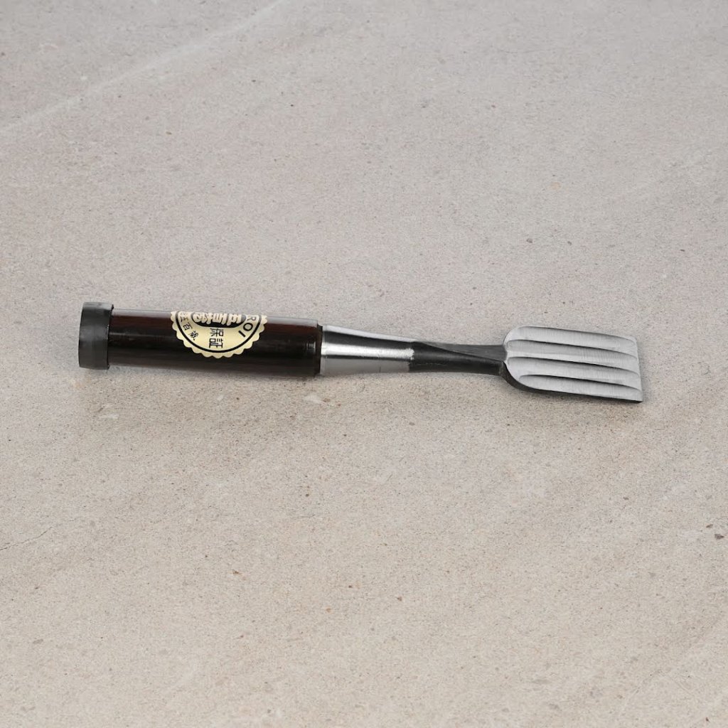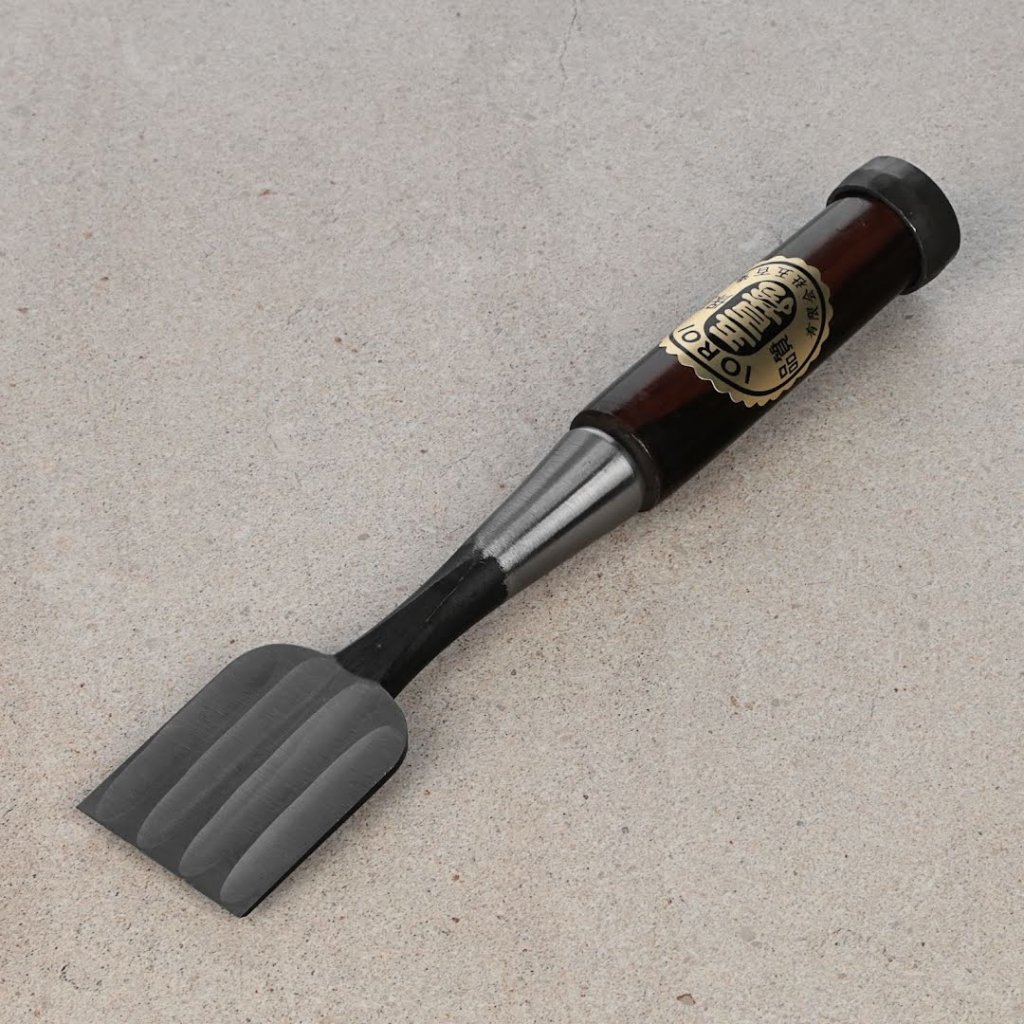 The IOROI Oire Japanese Bench Chisel is a masterpiece crafted by traditional toolsmiths. Featuring a 42 mm blade width and a 4-line hollow ground design, this chisel is ideal for precise woodwork, such as mortise holes. It uses high-grade Yasuki steel and has a durable ebony handle for a comfortable grip. This product is recognized as a "Traditional Craft Designated by the Minister of International Trade and Industry" for its exceptional quality.