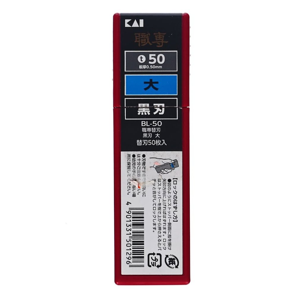 KAI Japanese Long Super Acute Edge Replacement Blades for precise and durable cuts. The package includes fifty blades. Made in Japan.