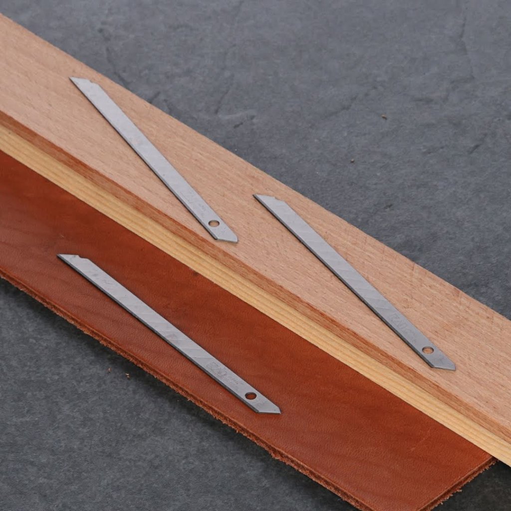 The KAI Japanese Replacement Blades, model SS-50, offer precision in cutting various materials such as cloth. This slim 6 mm blade fits perfectly in the SS-110 knife and features a 0.3 mm thickness and a 20-degree blade angle for accurate cuts. Each package includes 50 pieces of these high-quality blades.