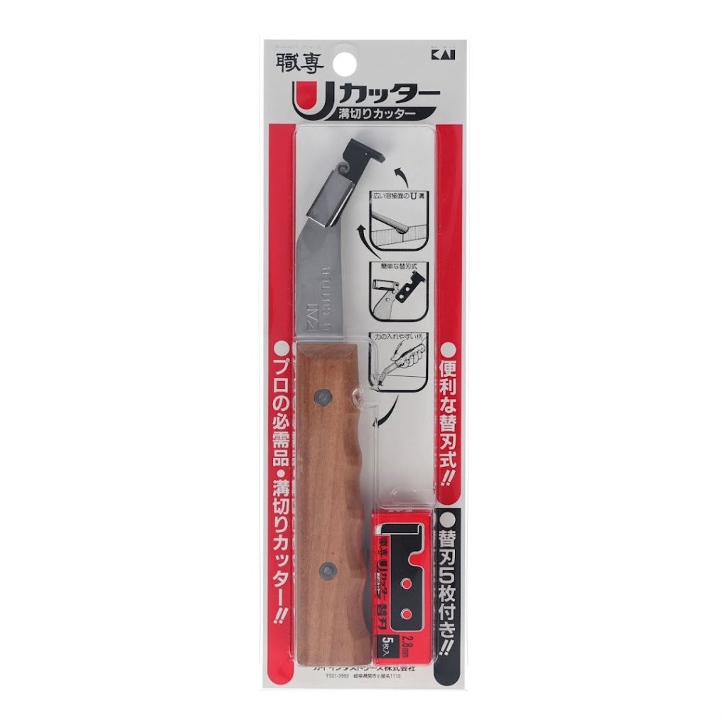 The KAI Japanese U-Groove Cutter, model UC-28, is essential for professionals requiring precise U-shaped groove cutting. This cutter features a convenient replaceable blade system and five replacement blades, ensuring prolonged use and efficiency. Ideal for various applications, it guarantees clean and accurate grooves every time.