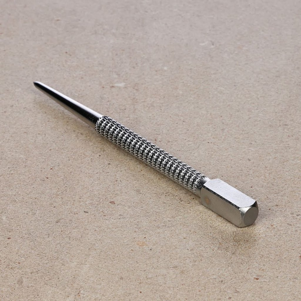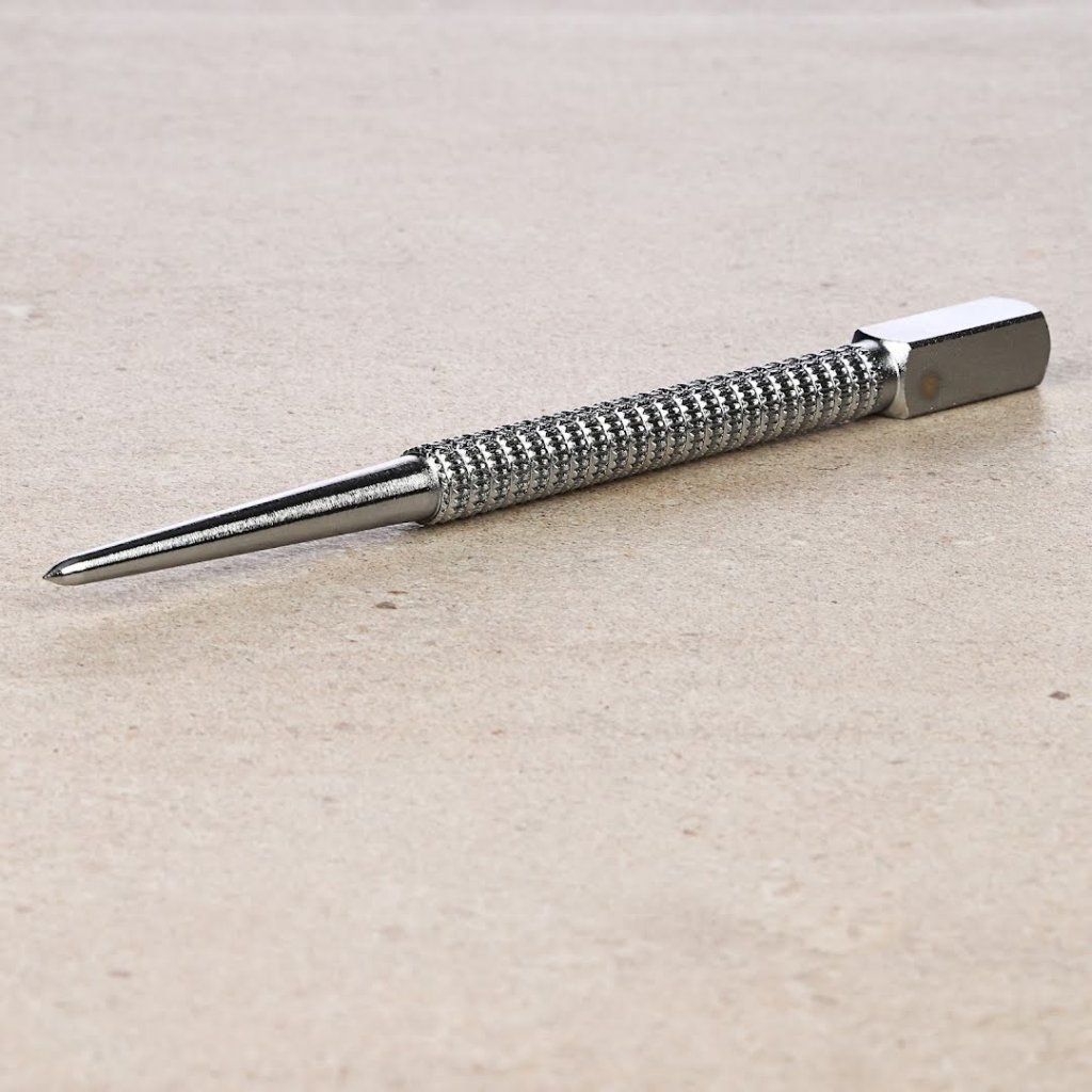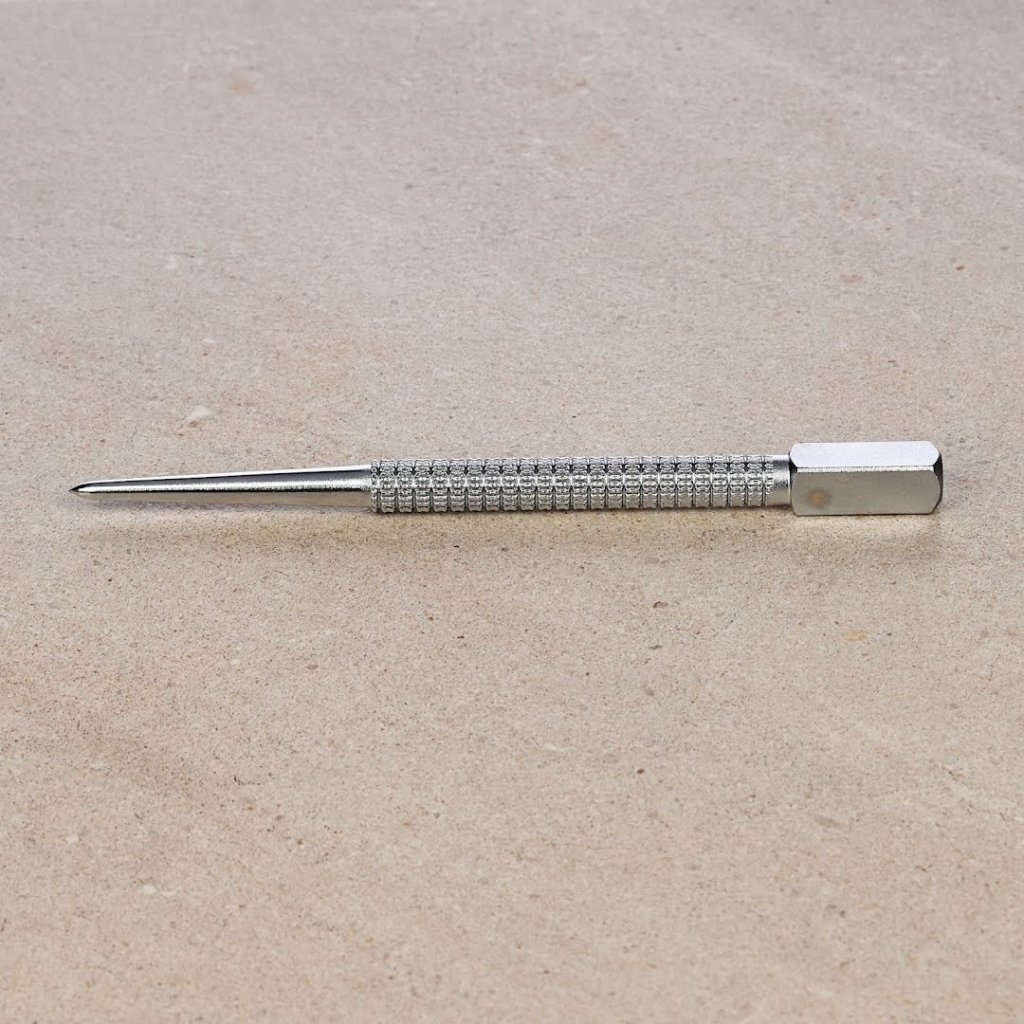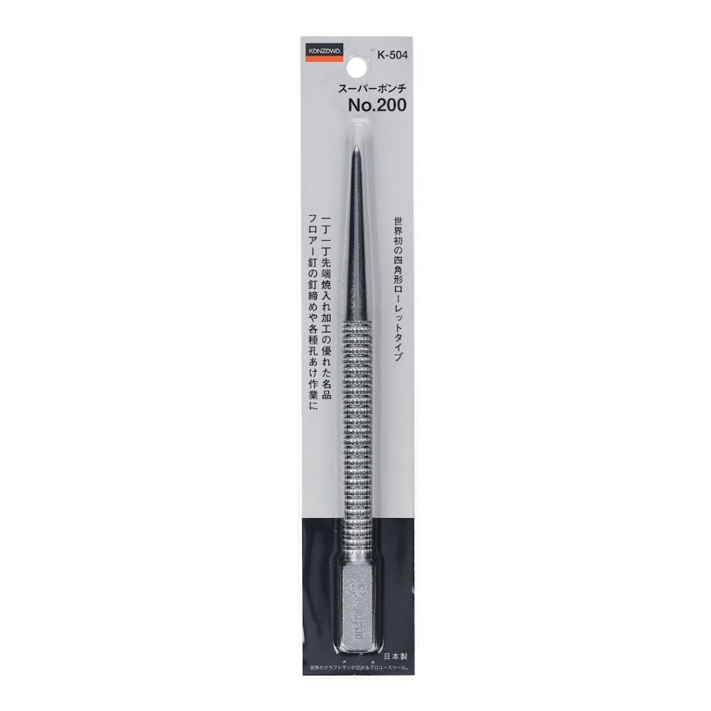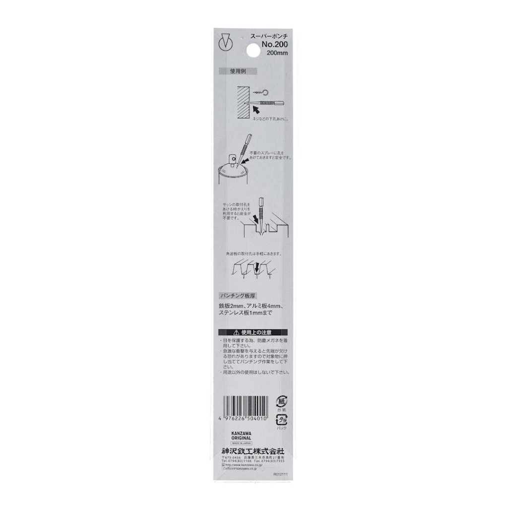 The KANZAWA Japanese Prick Punch, model No.200, is ideal for making holes or pilot holes in steel plates, aluminum, and stainless steel. Measuring 200 mm in length, this punch features a knurled grip for slip resistance and a square head to prevent rolling. The tip is specially hardened and polished for durability, ensuring precise and reliable performance.