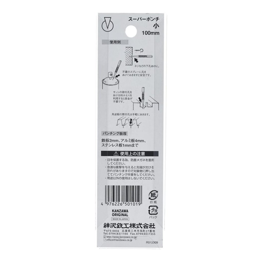 The KANZAWA Japanese Prick Punch, Small, is designed for punching holes and pilot holes in materials such as iron plates, aluminum plates, and stainless steel plates. Featuring a knurled grip for slip resistance, this tool ensures precision with its hardened tip that reduces rebound. Each tip is hand-grounded by craftsmen for enhanced durability and a rounded finish. The square head prevents the punch from rolling off surfaces, making it convenient and reliable for various DIY tasks.