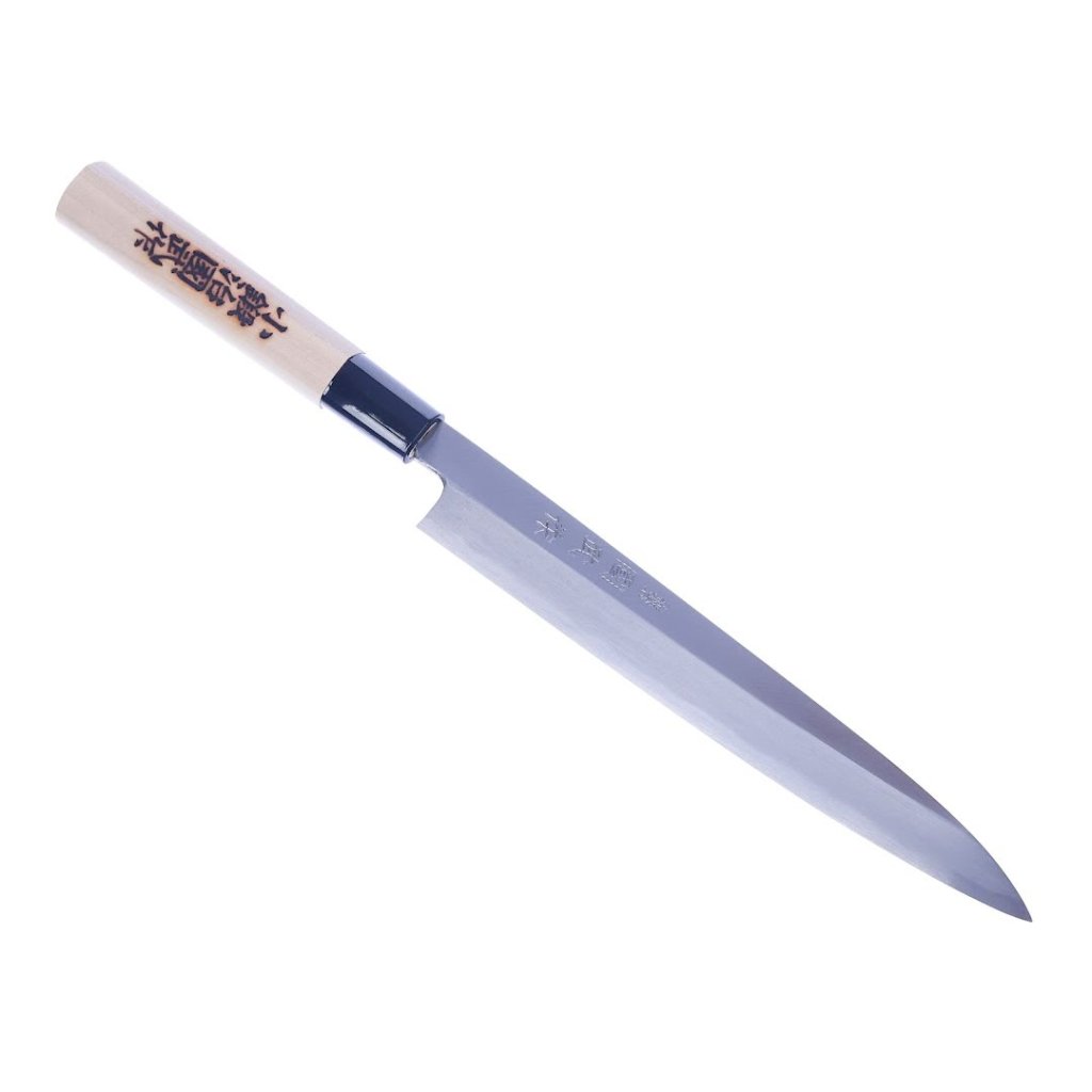 Craft precise sashimi using the 210-mm MIKI HAMONO SEISAKUSHO Japanese Yanagiba knife, which is sharp and perfectly balanced for effortless cutting. Made in Japan.