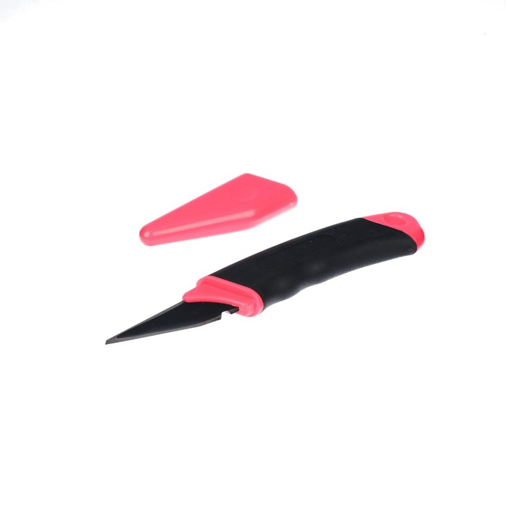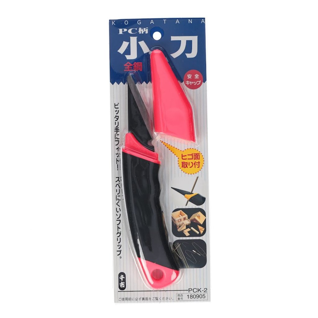 The PC Kogatana Japanese Woodworking Knife is ideal for woodworking, bamboo crafting, and other intricate tasks. It features a non-slip soft grip that fits comfortably in the hand and ensures precision and control. The blade includes a Higo-style bevel and a safety cap for secure storage. It measures 55 x 175 x 15 mm and weighs 80 g.