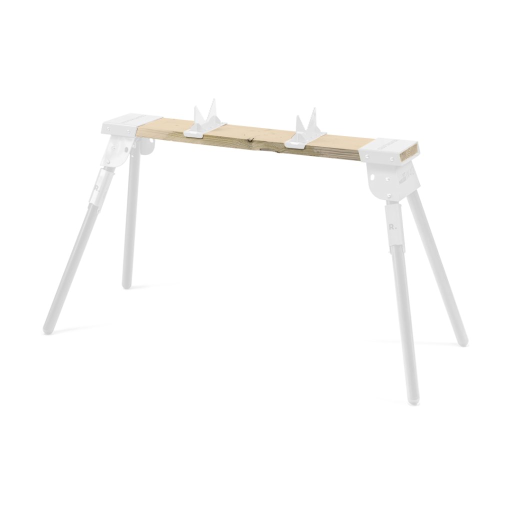 This planed wooden board acts as a connector between the two steel bases of the CRAFTMAKER Cut Maker sawhorse. It can also serve as a workbench base or a platform for mounting the Cut Maker jaws, which securely hold logs or round timber in place while cutting. You can cut with peace of mind, knowing your chainsaw chain will stay sharp. Replace the board as needed when it becomes worn.