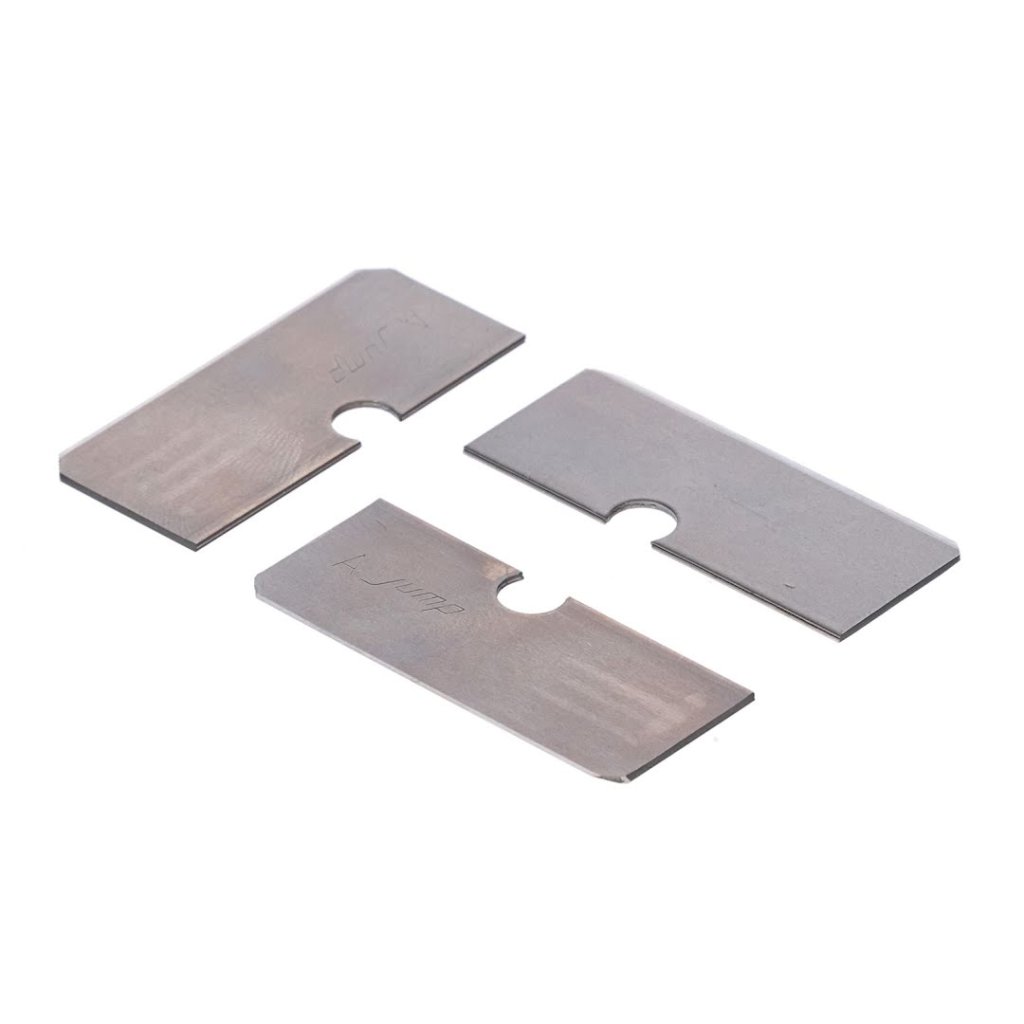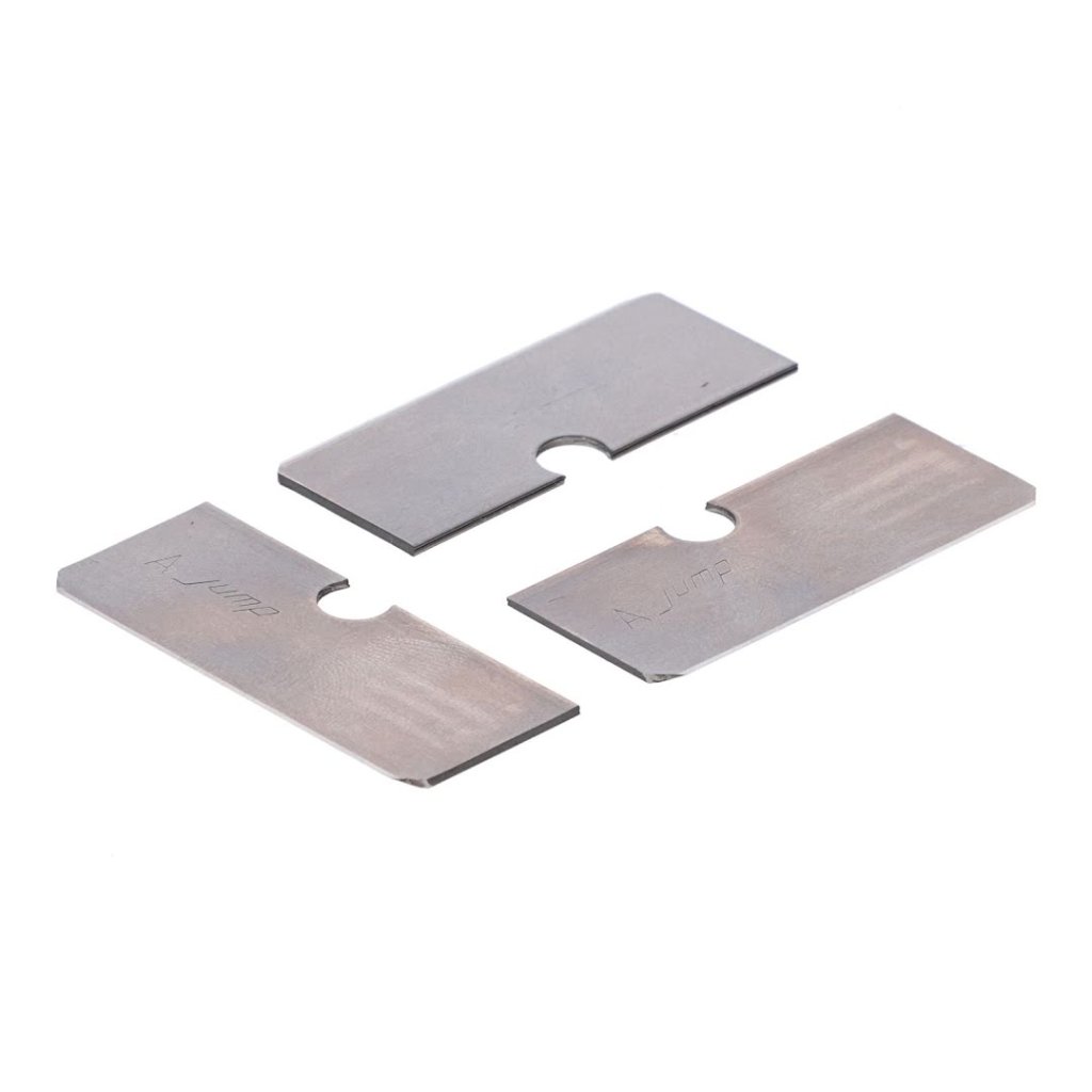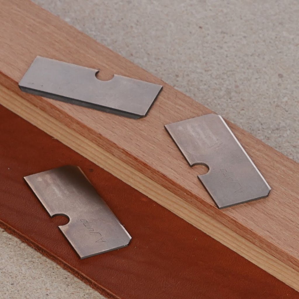 The RAKUDA Japanese Woodworking Replacement Blades for the hand plane J-45 are designed for optimal woodworking tasks. This pack includes three replacement blades, each measuring 45 mm in width, 19 mm in height, and 1 mm in depth. These blades are perfect for planing wood surfaces, chamfering wood, and edge trimming plywood and veneers.