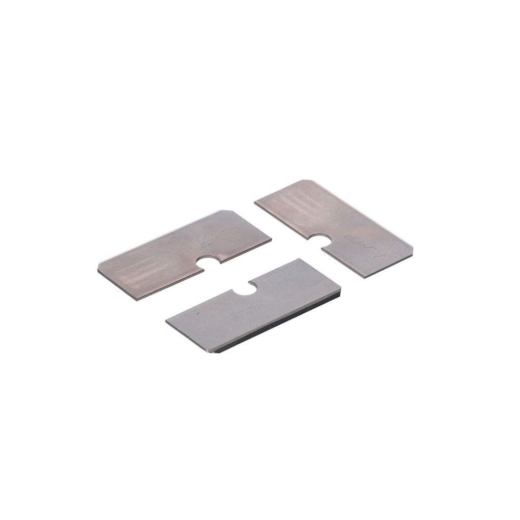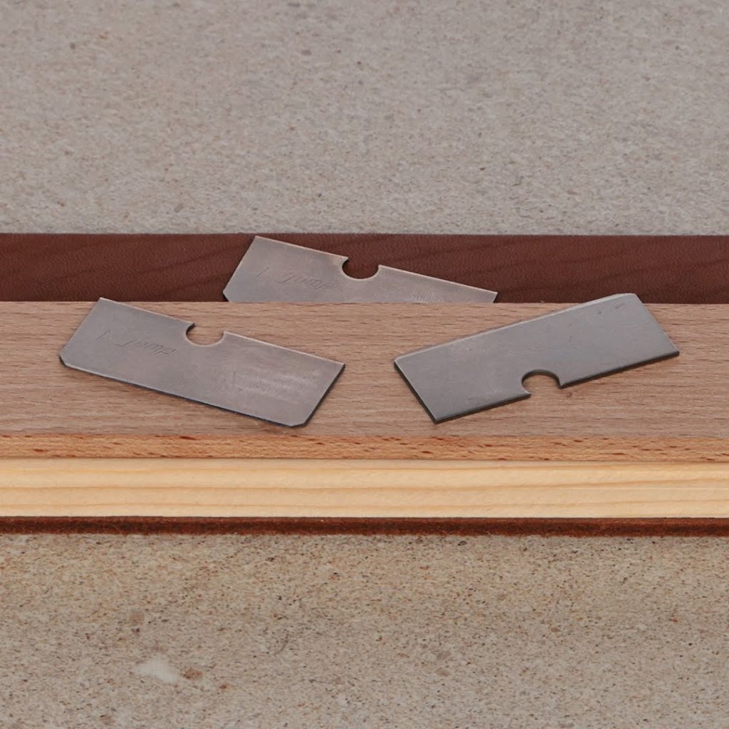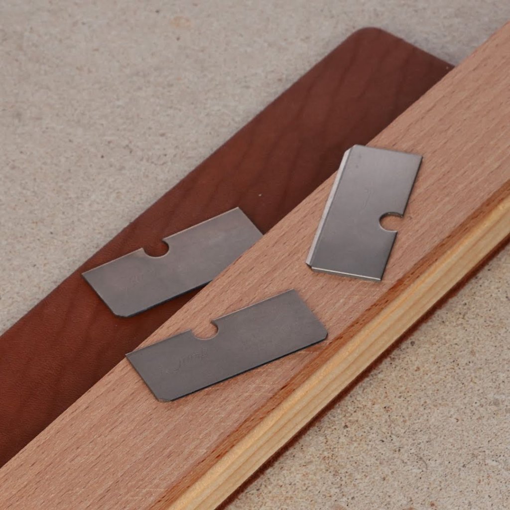 The RAKUDA Japanese Woodworking Replacement Blades for the hand plane J-45 are designed for optimal woodworking tasks. This pack includes three replacement blades, each measuring 45 mm in width, 19 mm in height, and 1 mm in depth. These blades are perfect for planing wood surfaces, chamfering wood, and edge trimming plywood and veneers.