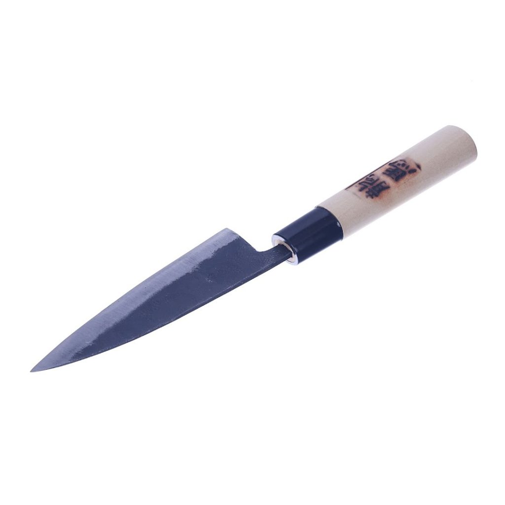 The versatile MIKI HAMONO SEISAKUSHO Japanese 150-mm petty knife is ideal for fine cuts. It is lightweight, sharp, and durable, suitable for all chefs.