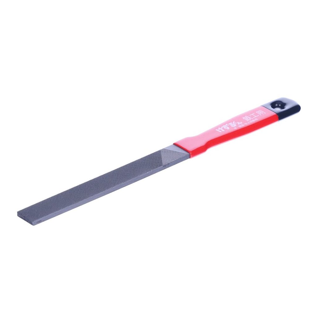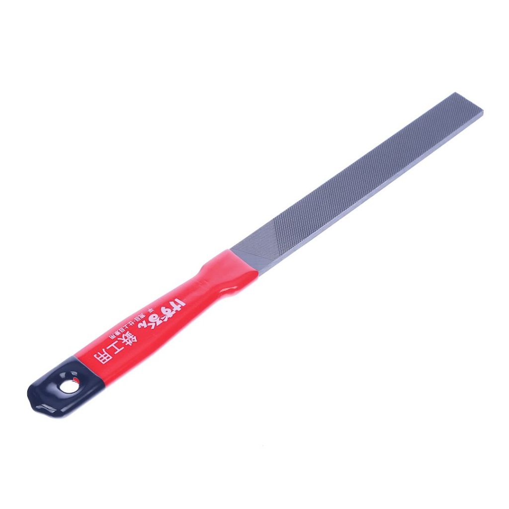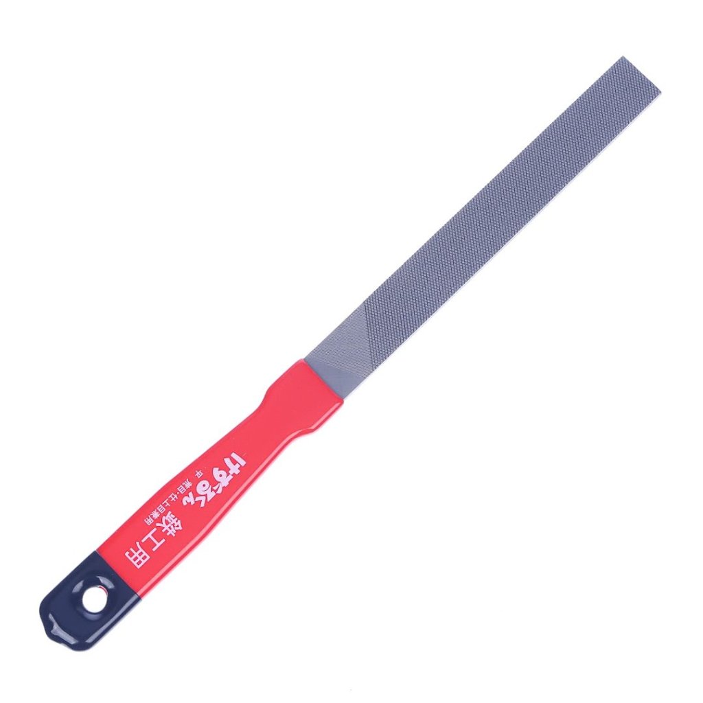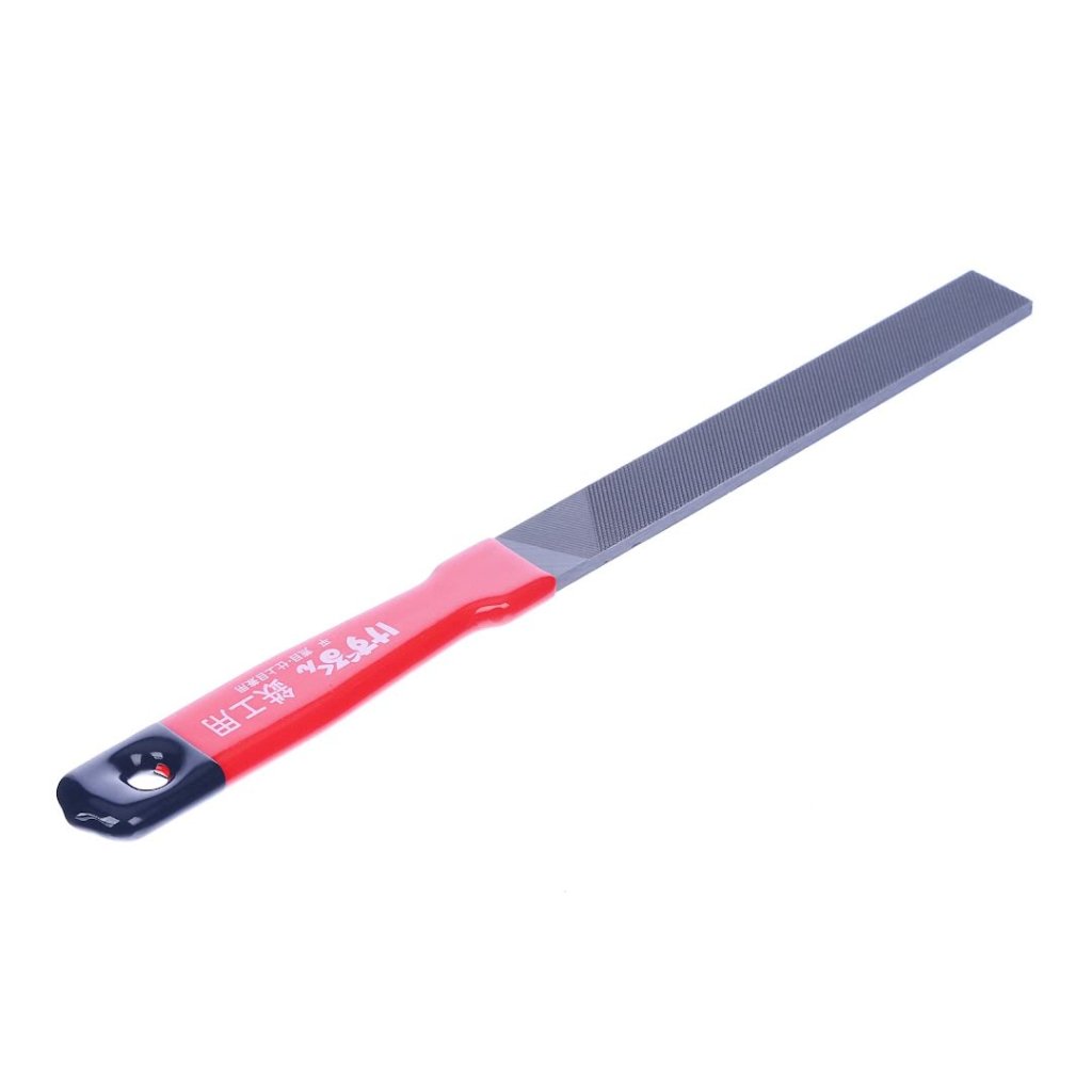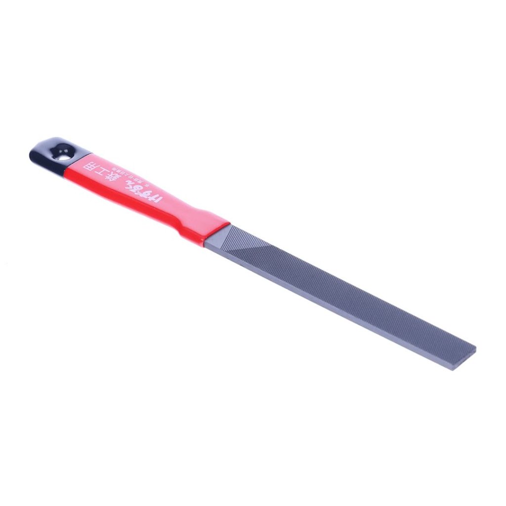 The SENKICHI Japanese Flat File is a versatile tool designed to file efficiently and polish general metals, including iron, copper, brass, and aluminum. It has a double-sided design with coarse and fine teeth and is perfect for various metalworking tasks. The file has a flat shape and a total length of 215 mm, making it ideal for reaching into tight spaces. Its lightweight design, weighing just 100 g, is complemented by a convenient red soft-grip handle for ease of use and comfort during extended work periods.