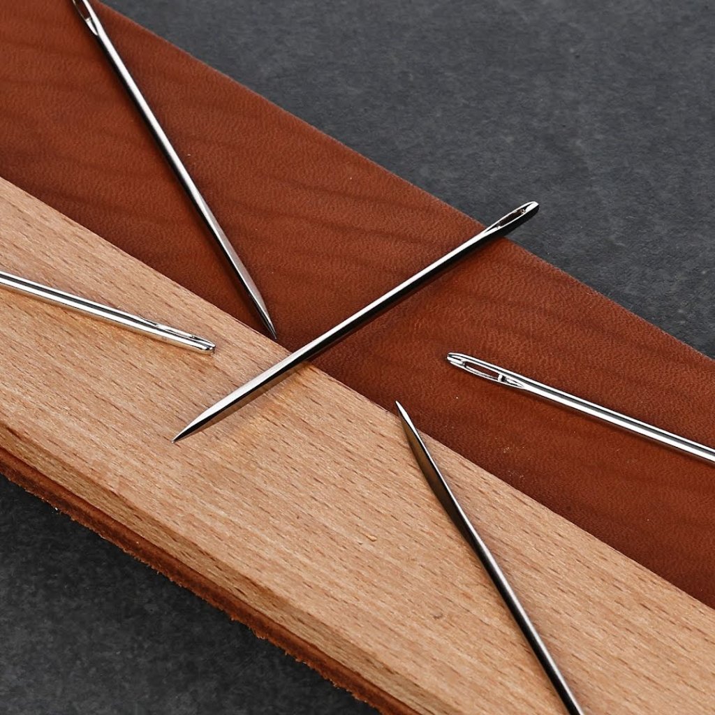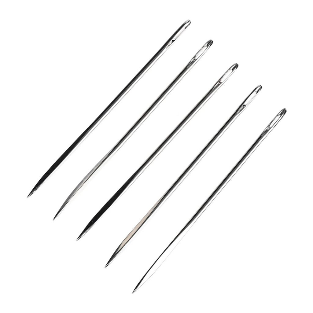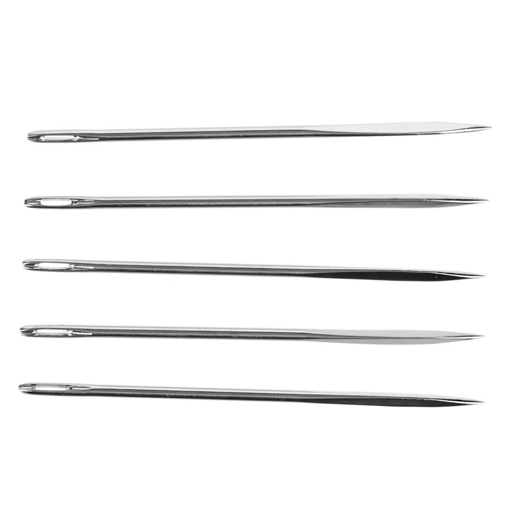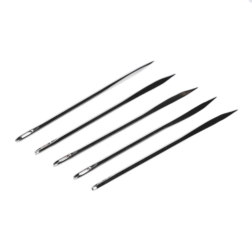 The SENKICHI Japanese Sail Needle Set is ideal for threading, sewing, and punching holes in various materials. This set includes five needles, each measuring 75 mm in length and 1.3 mm in thickness. The needle eye size is about 0.7 x 5.3 mm, making it perfect for crafts, leatherwork, and general sewing tasks.