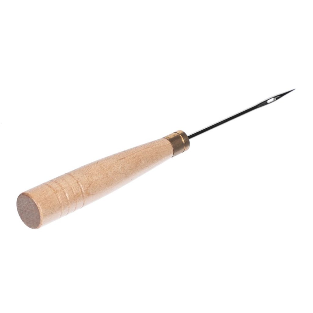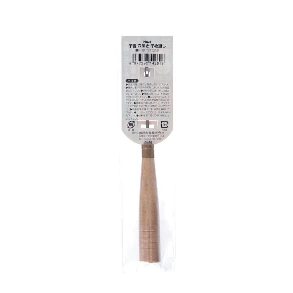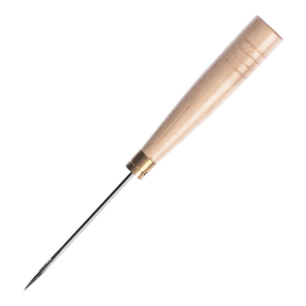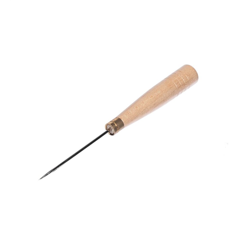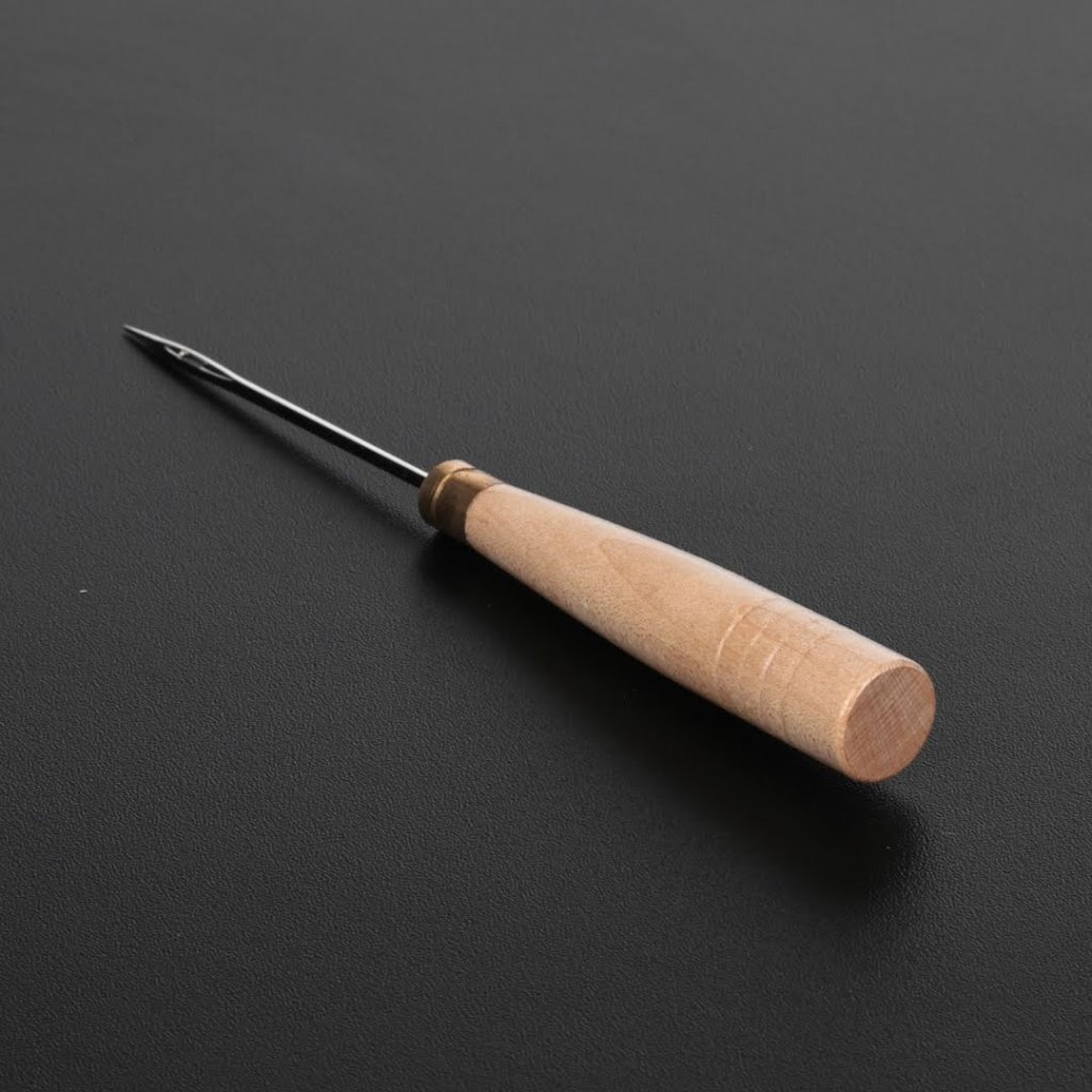 The SENKICHI Japanese Sewing Awl, model No.4, is essential for piercing paper and vinyl. With a total length of 165 mm and a needle length of 75 mm, it's designed for precision in scribing and detailed work. The awl features a sturdy handle and a sharp, durable needle, making it perfect for various crafting needs.