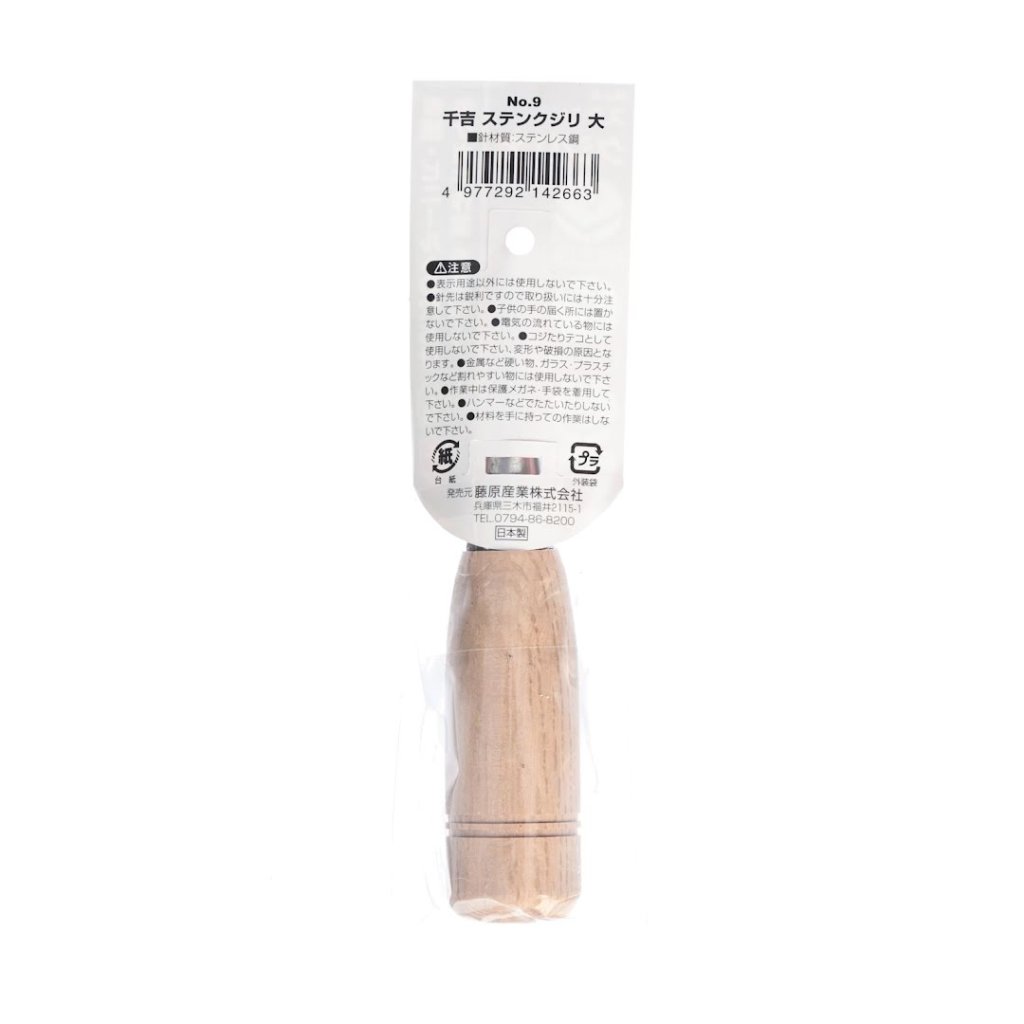 The SENKICHI Japanese Stainless Steel Scratch Awl, model No.9, is designed for punching holes in paper and vinyl, scoring, and leatherwork. Made from stainless steel, it is resistant to rust, ensuring long-lasting durability. This tool measures 25 x 125 x 25 mm and weighs 80 g, making it easy to handle. Ideal for precision tasks, it comes with a single piece per pack.