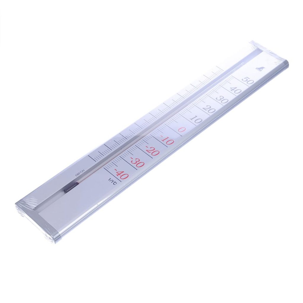 The SHINWA Aluminum Thermometer is a large, easy-to-read thermometer designed for efficient temperature monitoring in homes, classrooms, and offices. With dimensions of 80 mm width x 450 mm height x 12 mm depth and weighing 210 g, this aluminum thermometer is perfect for use in various institutions such as companies, schools, and hospitals. It features a measurement range of -40 °C to 50 °C with an accuracy of ±1 °C (below -30 °C, accuracy is ±2 °C), ensuring precise temperature readings. Each scale mark represents 1 degree, allowing for easy temperature tracking.