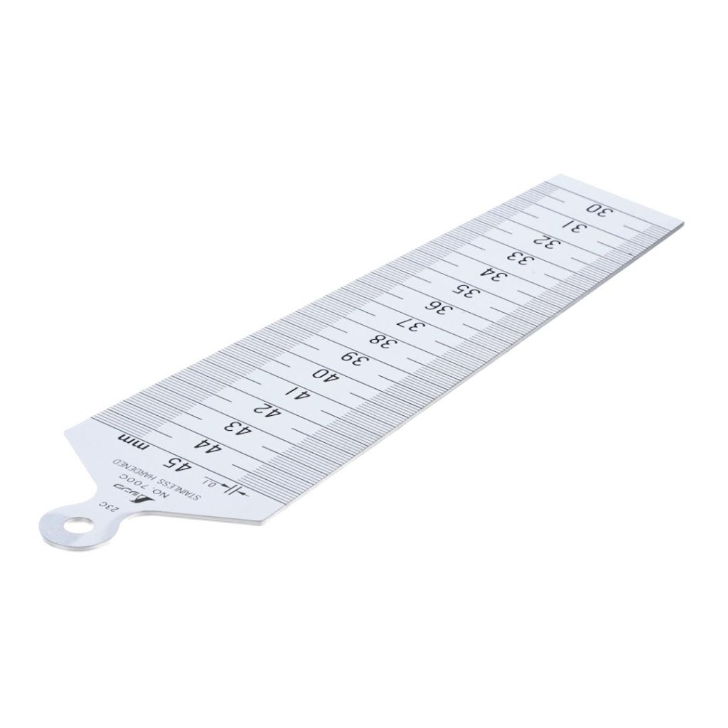 The SHINWA Japanese Stainless Steel Taper Gauge is a precision tool designed to measure inner diameters, hole sizes, and gaps easily. Its 30-45 mm measurement range and accuracy of ±0.05 mm make it ideal for detailed work. The gauge features a hard chrome plating finish, ensuring durability and resistance to wear. With a slim profile (46 x 160 x 1.2 mm) and lightweight design (50 g), it offers convenience and ease of use for professionals and DIY enthusiasts alike.