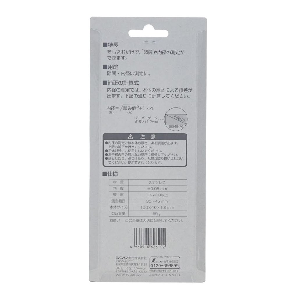 SHINWA Japanese Stainless Steel Taper Gauge, 30-45 mm
