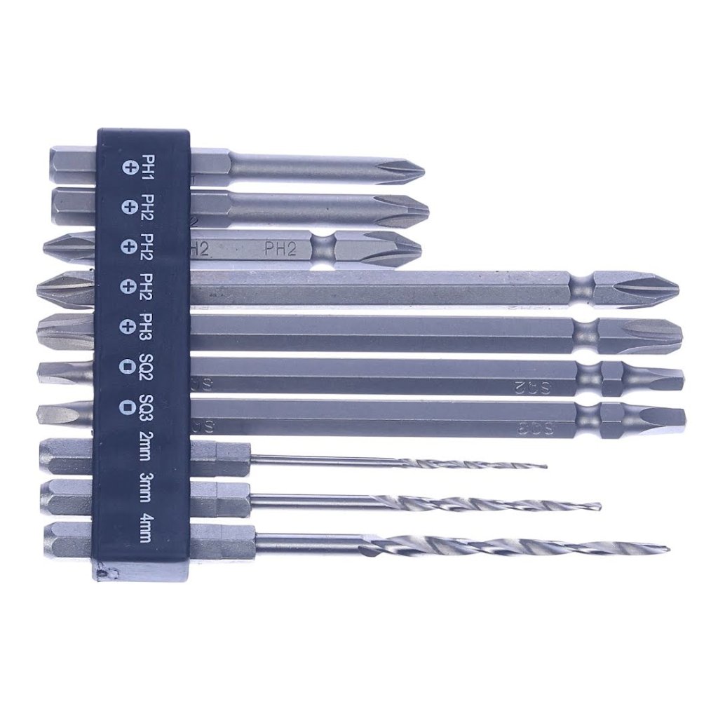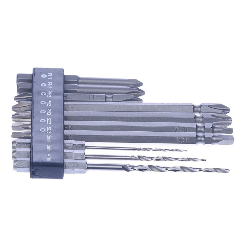 The SK11 10-piece Screwdriver and Drill Bit Set with Holder is a versatile set designed to make screw fastening tasks more efficient and precise. It includes seven screwdriver bits and three wood drill bits with a bit holder, making it an ideal choice for woodworking projects. The set is designed to prevent wood splitting when using wood screws, thanks to the included pre-drill bits. It's compatible with drill and impact drivers, ensuring various uses. With a total of 10 pieces, this set offers comprehensive coverage for various screw fastening needs.