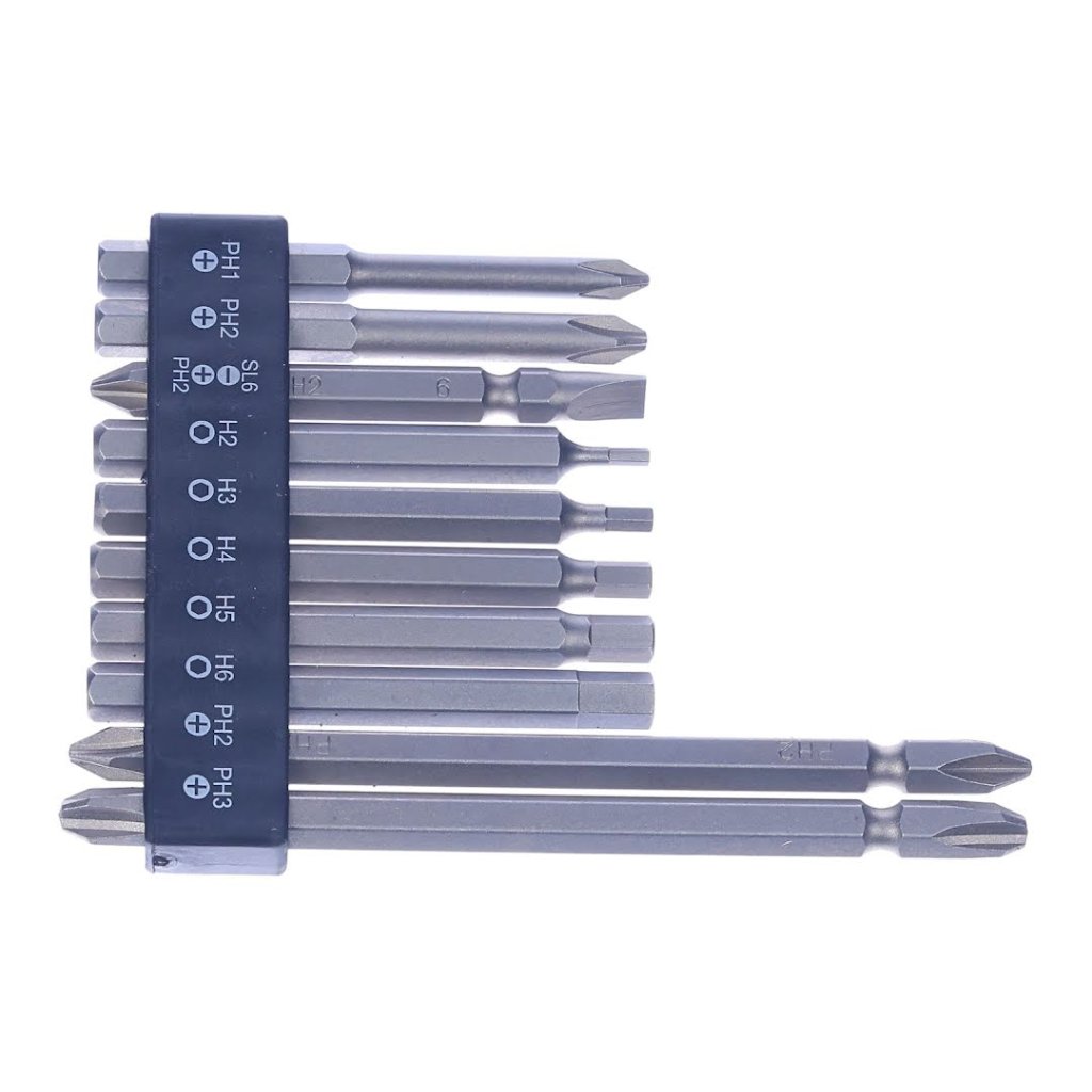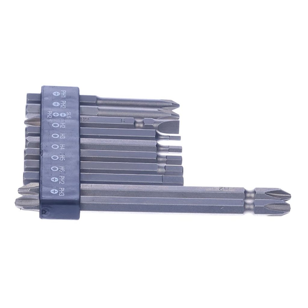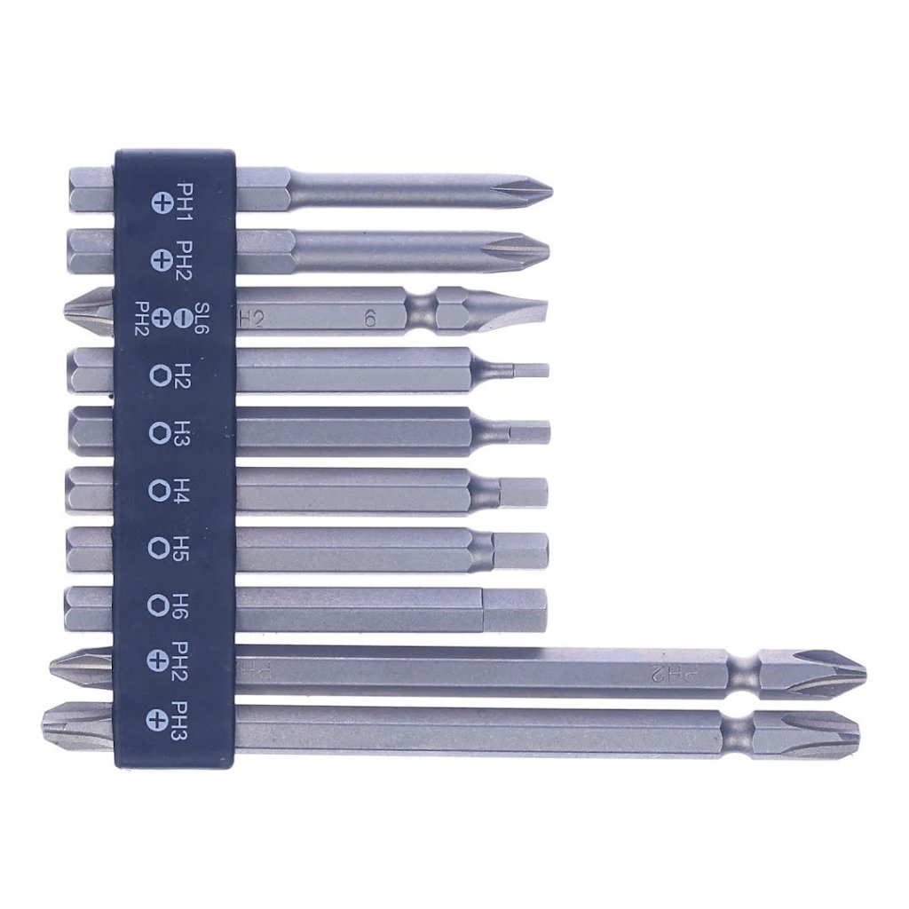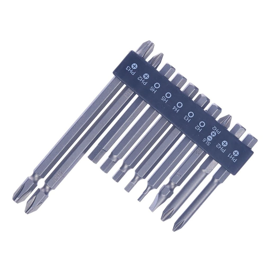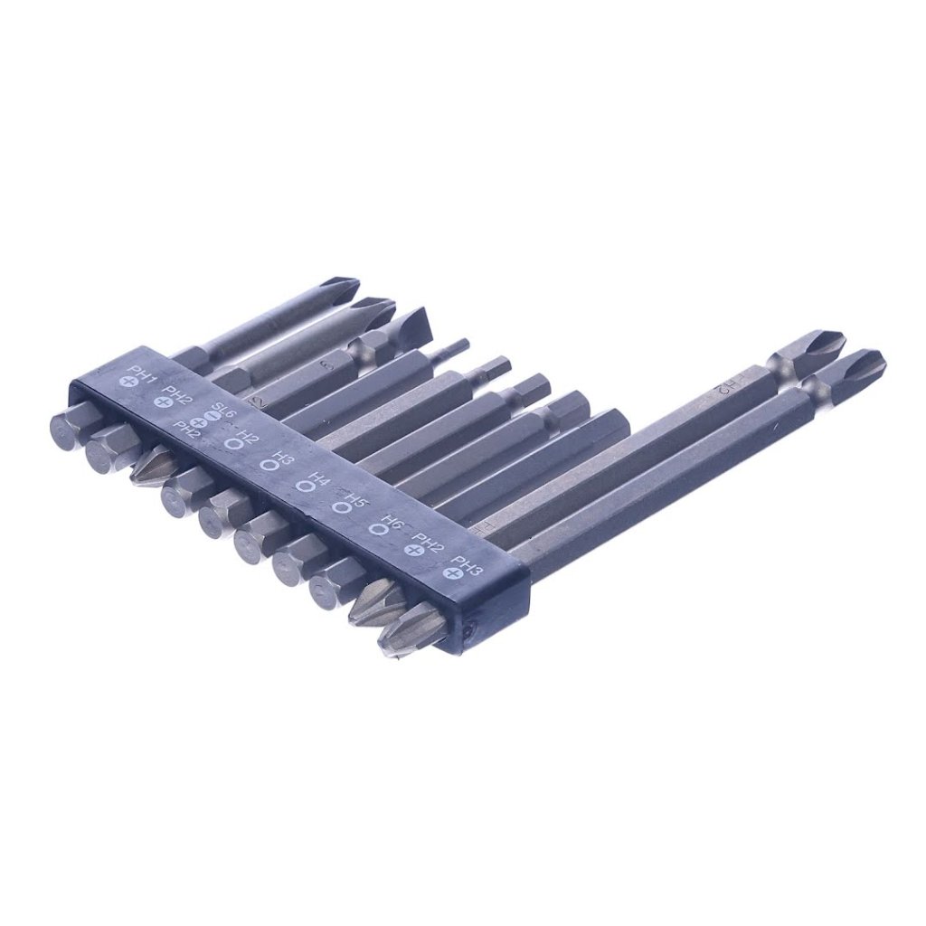 The SK11 10-piece Screwdriver Bit Set with Holder is versatile for screw-tightening tasks. It includes 10 bits with a mix of Phillips and hex types, catering to a variety of screws. Each set has a bit holder for easy organization and quick bit changes, making it compatible with drill and impact drivers. Perfect for DIY enthusiasts and professionals alike, this compact and lightweight set ensures precision at every turn.