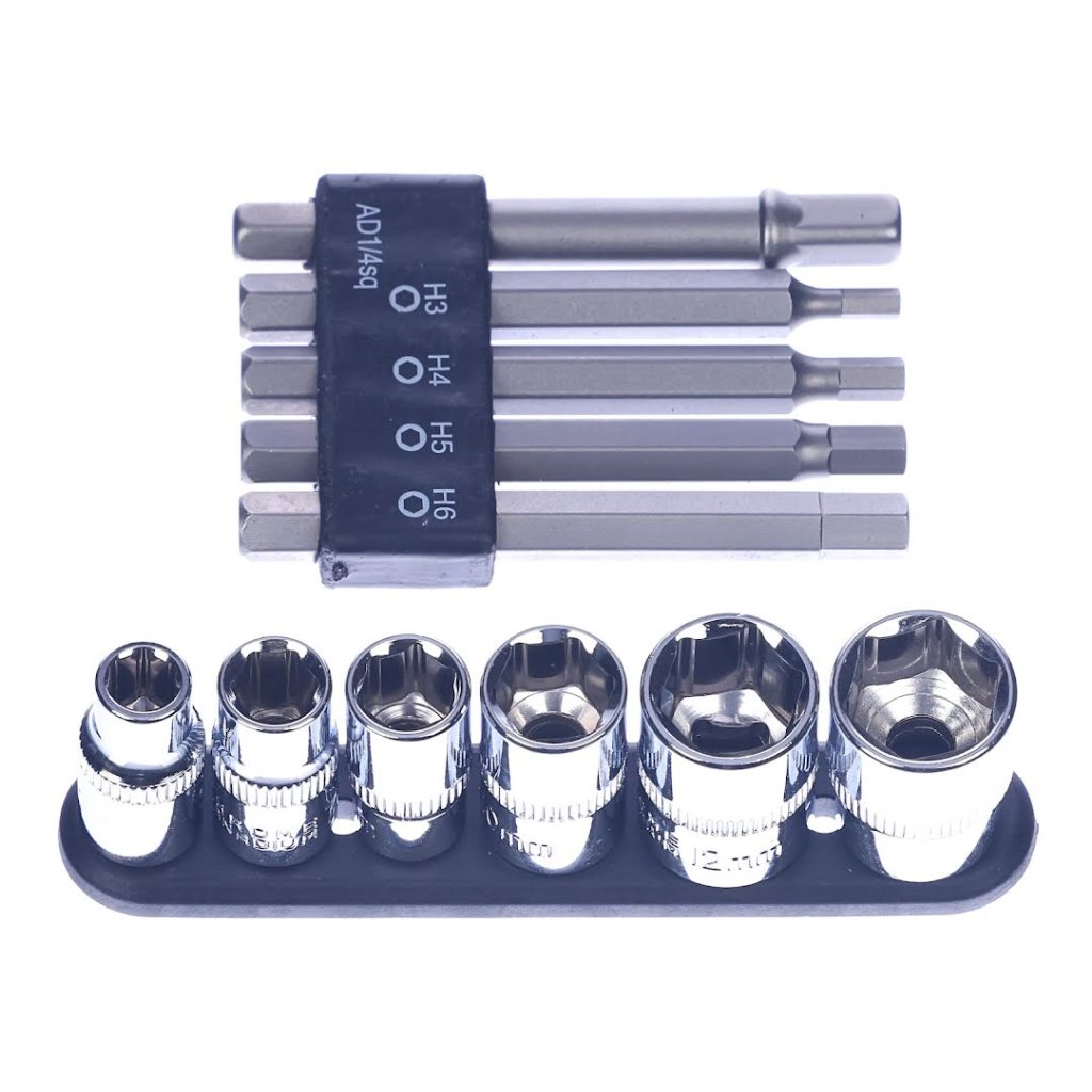 The SK11 SCB-108 Cheap 11 pc SDB Set Bit Holder is an essential toolkit designed for screw tightening tasks. This set includes four bits, one adapter, and six sockets, all neatly organized in a durable holder for easy access and storage. Compatible with drill and impact drivers, it offers versatility for various projects. Whether you're a professional or a DIY enthusiast, this compact and comprehensive set ensures you have the right tool for efficient work.