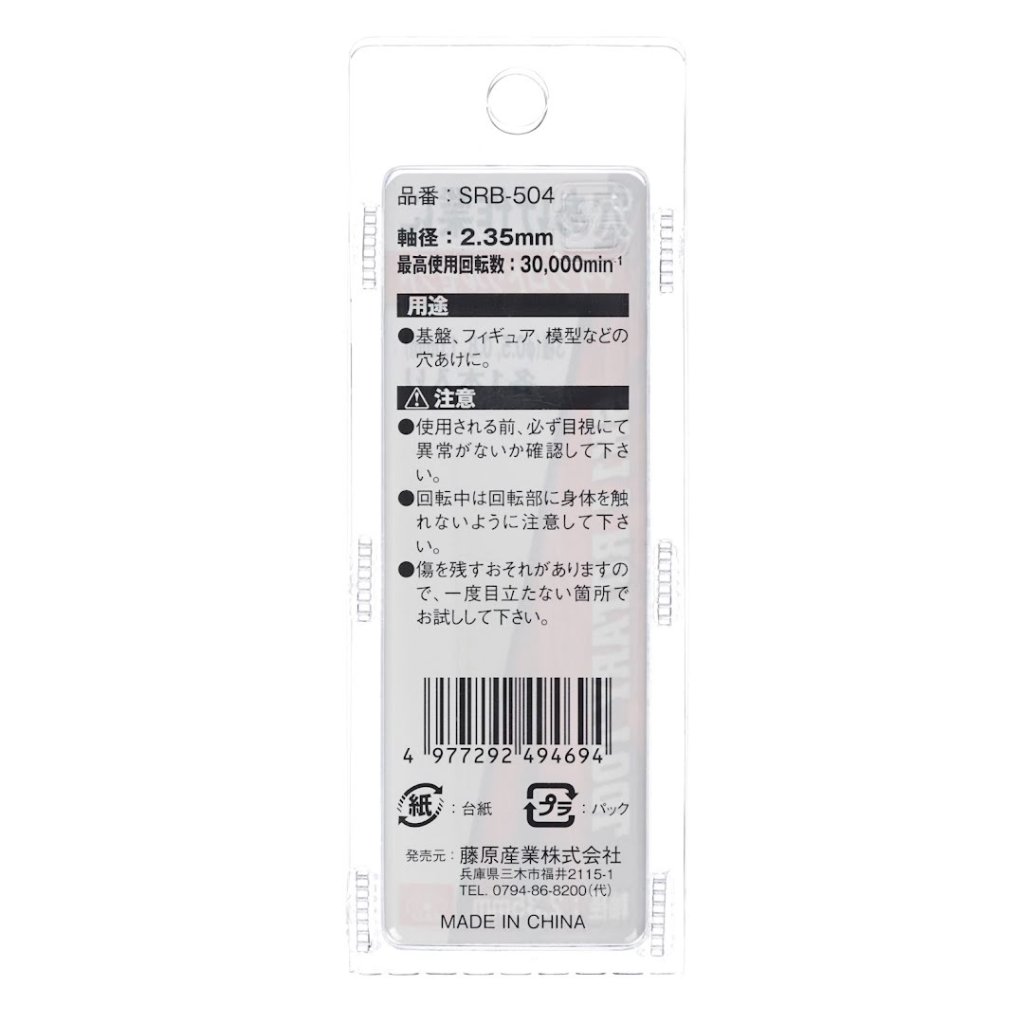 The SK11 Circuit Board Drill Bit, model SRB-504, is ideal for precise drilling tasks in circuit boards, models, and figurines. This set includes three drill bits with diameters of 0.5 mm, 0.8 mm, and 1.0 mm, each with a 2.35 mm shank. These bits are designed for high-speed operations with a maximum rotation speed of 30000 RPM and ensure efficient and accurate performance.