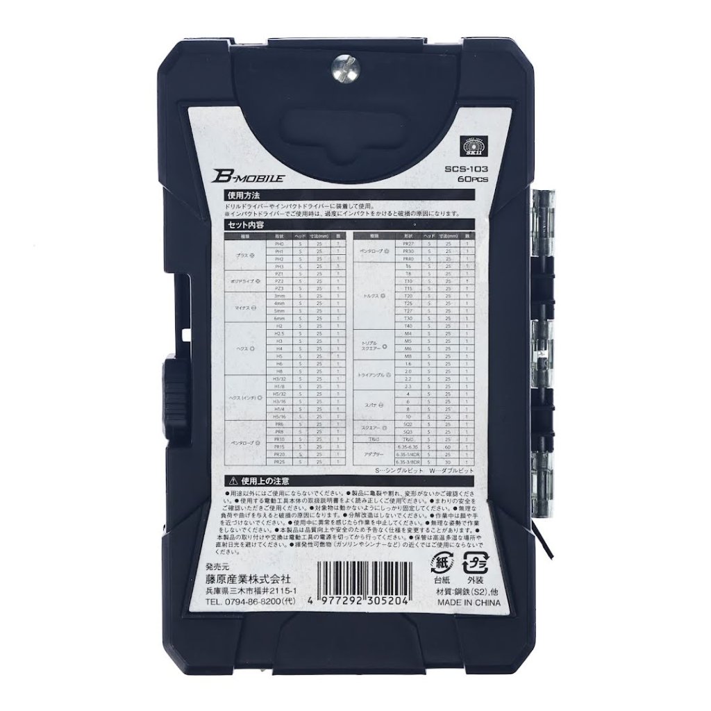 The SK11 60-Piece Bit Set with Case is a versatile solution for all your screw-driving needs. This set includes 57 bits and 3 adapters, making it ideal for use with both drill drivers and impact drivers. The set comes in a durable case for easy organization and portability.