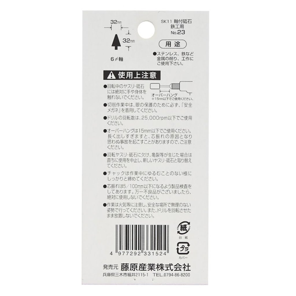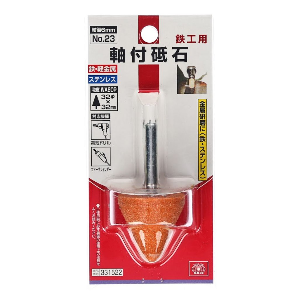The SK11 Abrasive Stone Point No.23 is a versatile tool for cutting and shaping metals such as iron, light metals, and stainless steel. It can be used with electric drills and air grinders, making it ideal for various metalworking tasks. With a 6 mm shank diameter and a grindstone width of 32 mm, this tool ensures precision and efficiency. Always operate at a rotation speed of below 25000 RPM for optimal performance.