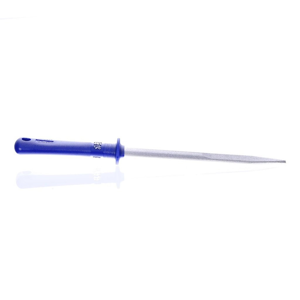 The SK11 All-purpose Diamond Sharpener is a versatile tool for precision sharpening tasks. Its tapered shape makes it ideal for reaching tight spots, ensuring even the most intricate tools can be sharpened with ease. This sharpener features a dual-grit design, with a #150 grit side for rough sharpening and a #300 grit side for fine finishing, making it suitable for a wide range of materials, including general blades, ceramics, and carbide tips. The electroplated diamond surface allows for efficient sharpening of even the hardest materials. For optimal performance, it is recommended to use water on the sharpening surface to enhance the sharpening process and extend the product's lifespan. Adding a bit of neutral detergent can further improve effectiveness.
