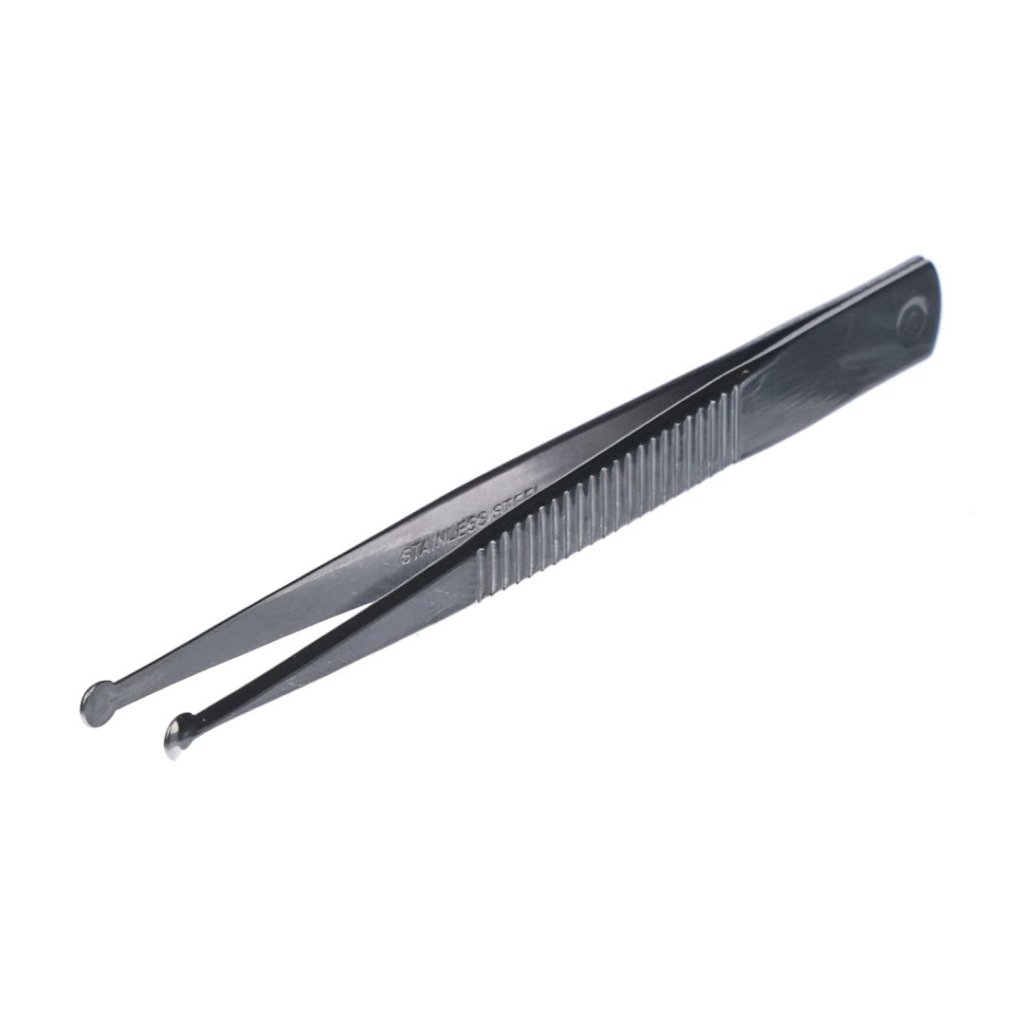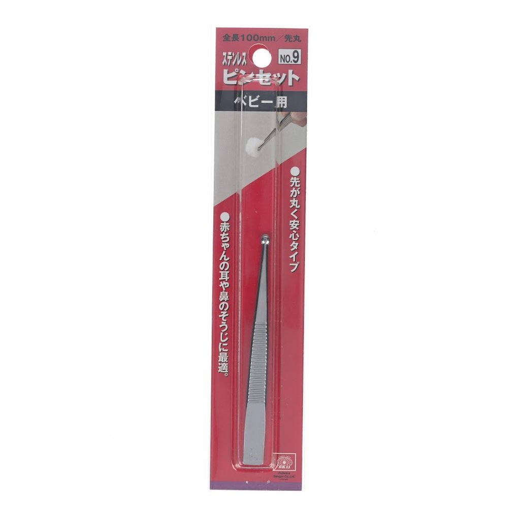 The SK11 Baby Tweezers, model No.9, are specially designed for delicate tasks like cleaning your baby's ears and nose. These round-tipped tweezers offer safe and gentle usage for sensitive areas. They are perfect for precision work, with a compact size of 100 mm in length and a weight of just 10 grams.