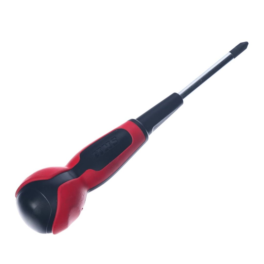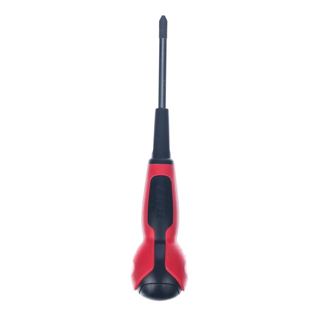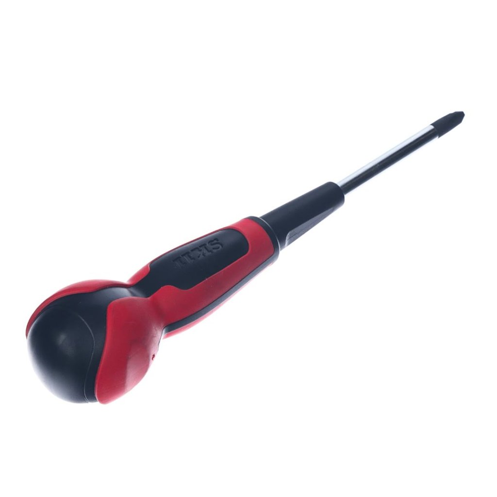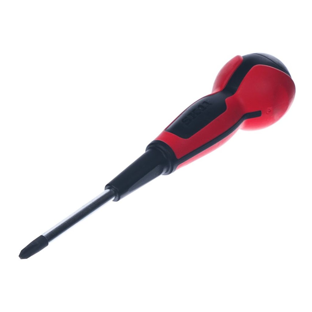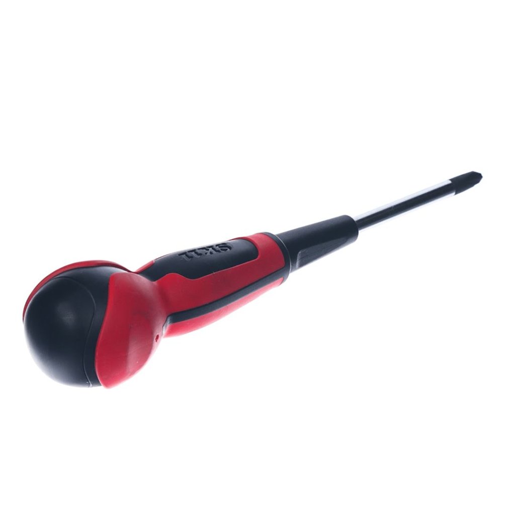 The SK11 Ball Grip Screwdriver features a high-elasticity cushion grip that provides a comfortable, non-slip hold, making it easier to apply torque. The round-type design ensures efficient power transfer by cradling the palm. Additionally, the magnetic tip helps to prevent screws from falling during use. Ideal for tightening screws, this tool has a PH2 tip and a 100 mm shaft and weighs 100 g.