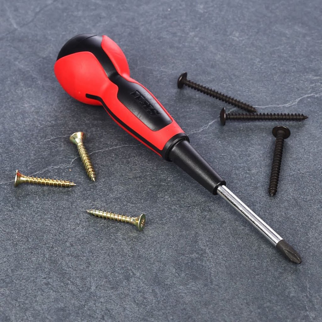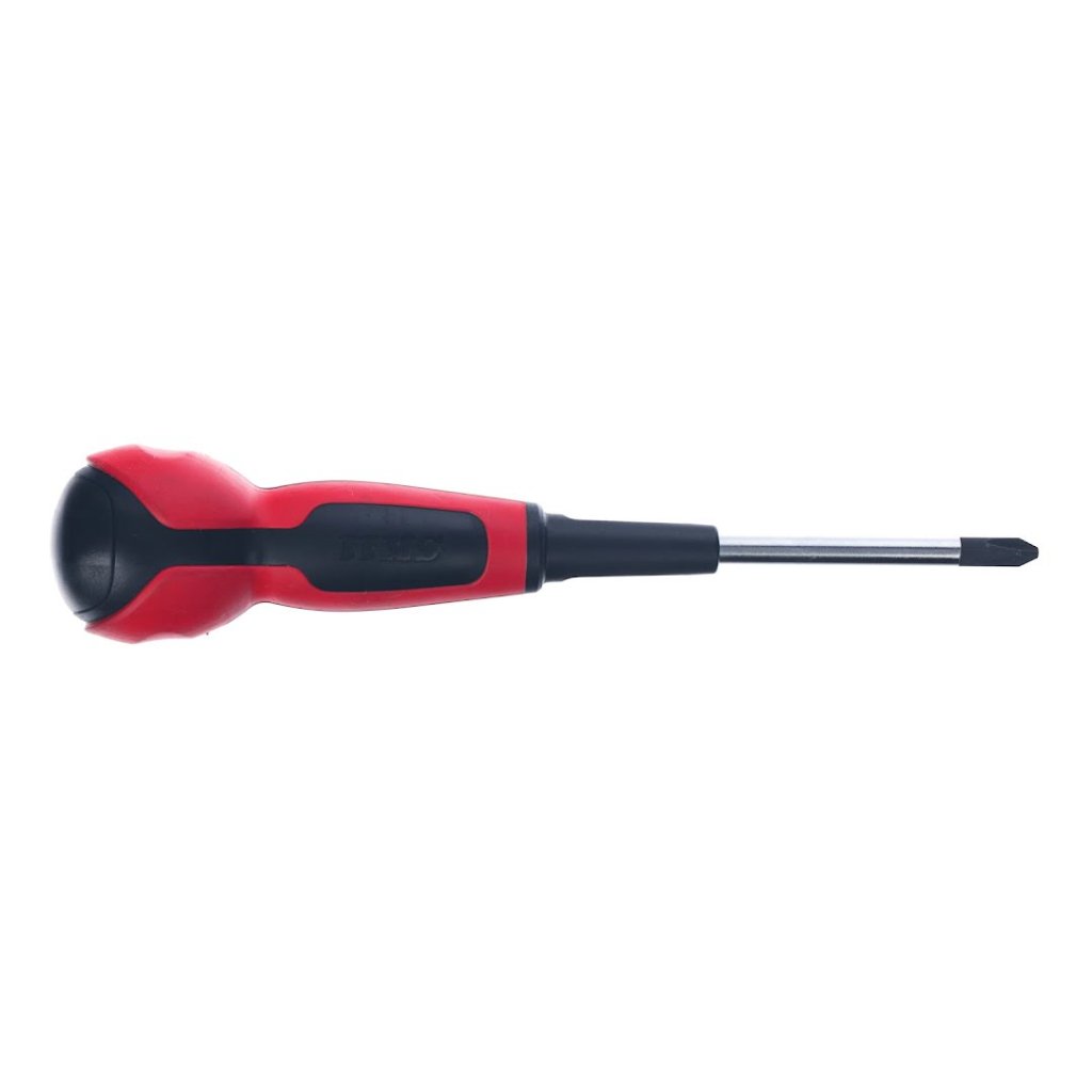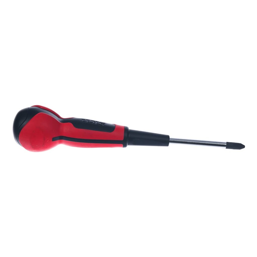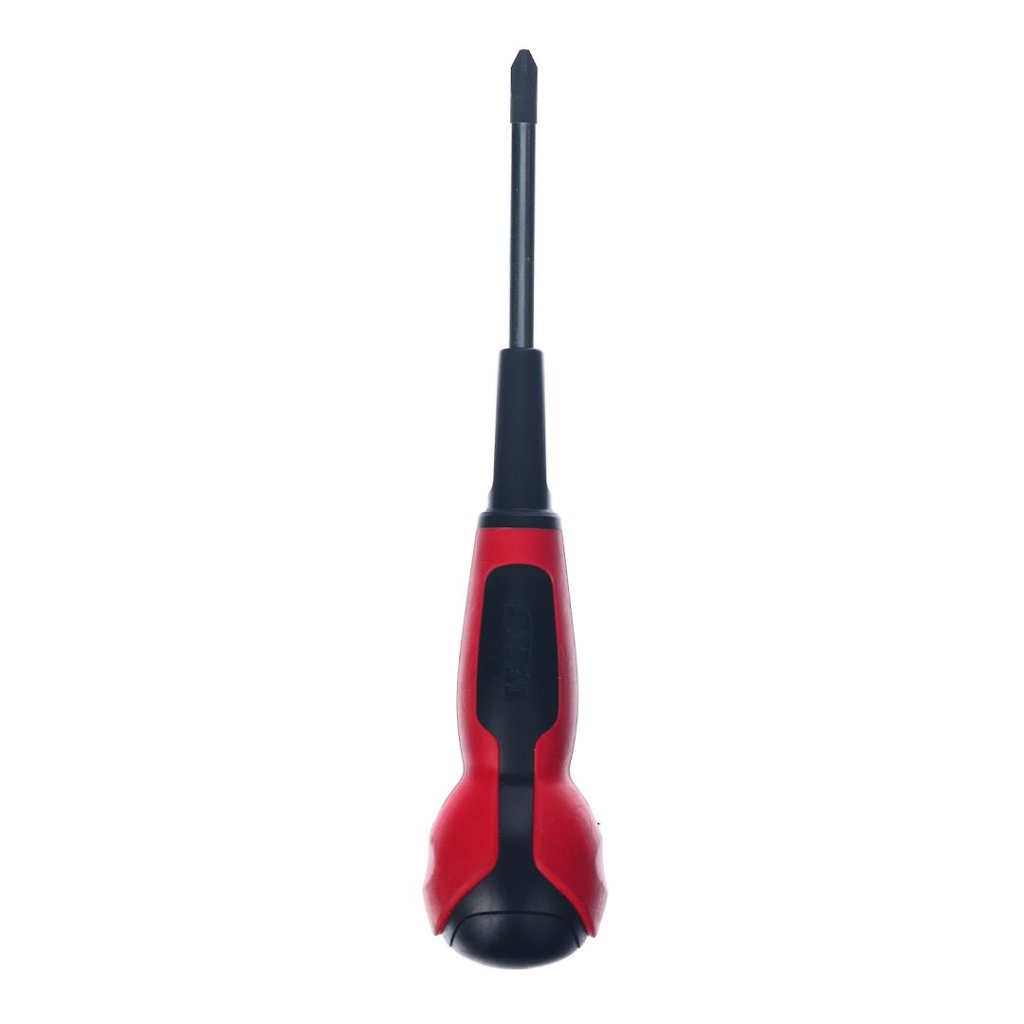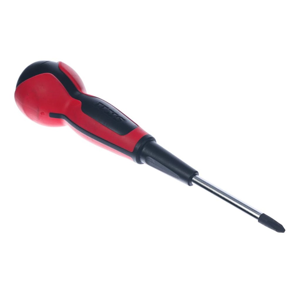 The SK11 Ball Grip Screwdriver features a high-elasticity cushion grip that provides a comfortable, non-slip hold, making it easier to apply torque. The round-type design ensures efficient power transfer by cradling the palm. Additionally, the magnetic tip helps to prevent screws from falling during use. Ideal for tightening screws, this tool has a PH2 tip and a 100 mm shaft and weighs 100 g.