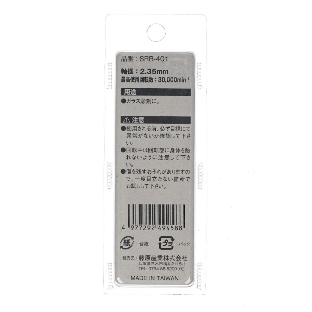 The SK11 Diamond Coated Rotary Burr, model SRB-401, is ideal for glass engraving and bird carving. With a 2.35 mm shank and a 0.9 mm diameter ball-shaped tip, this tool is perfect for precision work. It can be used for grinding various work materials and operates at a maximum rotational speed of 30000 RPM. The burr measures 0.9 x 45 x 0.9 mm and weighs 5 g.