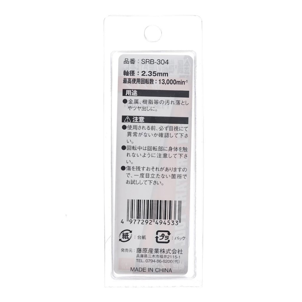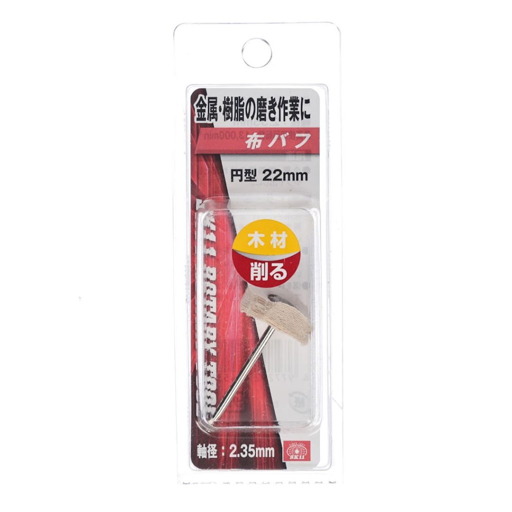 The SK11 Buffing Polish Wheel, model SRB-304, is ideal for polishing metal and resin surfaces. Measuring 22 mm in diameter, it features a 2.35 mm shaft and a maximum rotational speed of 13000 RPM. Perfect for removing dirt and adding shine, this wheel is designed for use with abrasive compounds to achieve a polished finish.