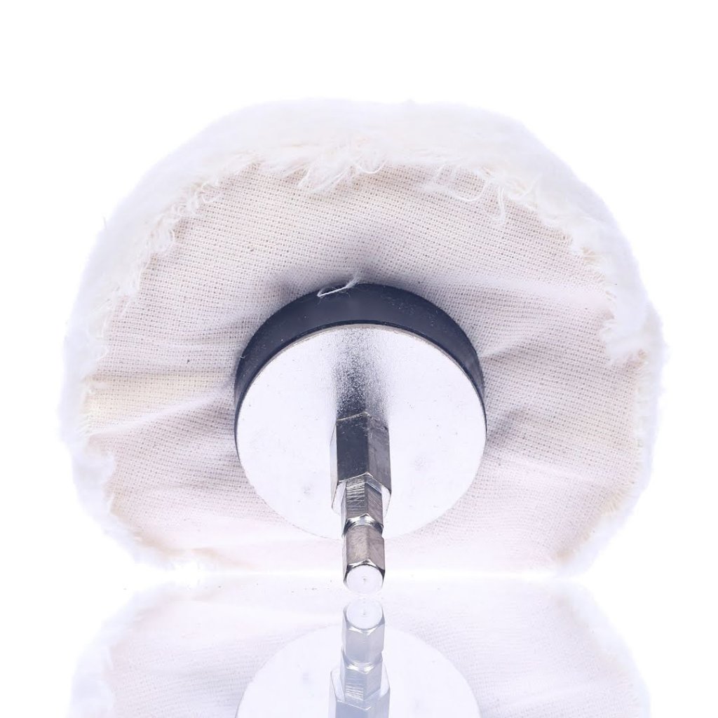 The 50-mm SK11 Buffing Wheel easily attaches to impact drivers and polishes metals brilliantly.