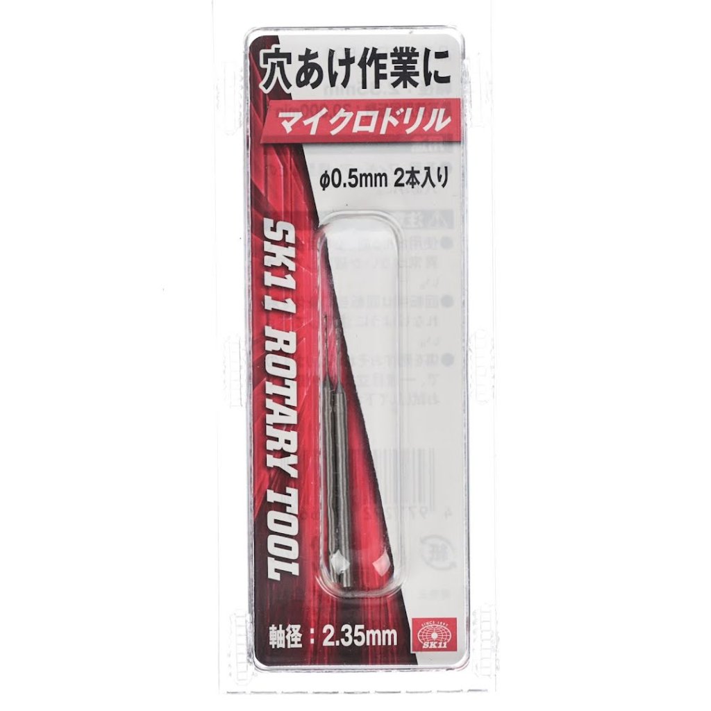 The SK11 Circuit Board Drill Bit, model SRB-501, is perfect for precision drilling in circuit boards, models, and figurines. The 0.5 mm diameter and a 2.35 mm shank ensure accuracy and stability. This drill can handle a maximum rotation speed of 30000 RPM, making it ideal for detailed and delicate work. The package includes two drills, providing convenience and backup for your projects.